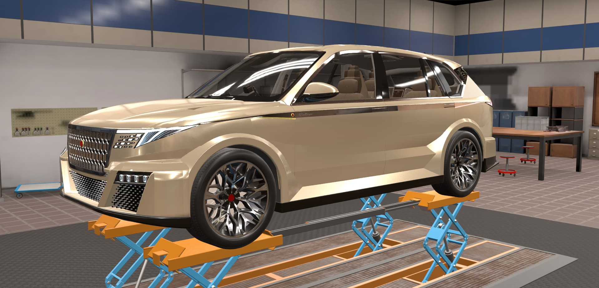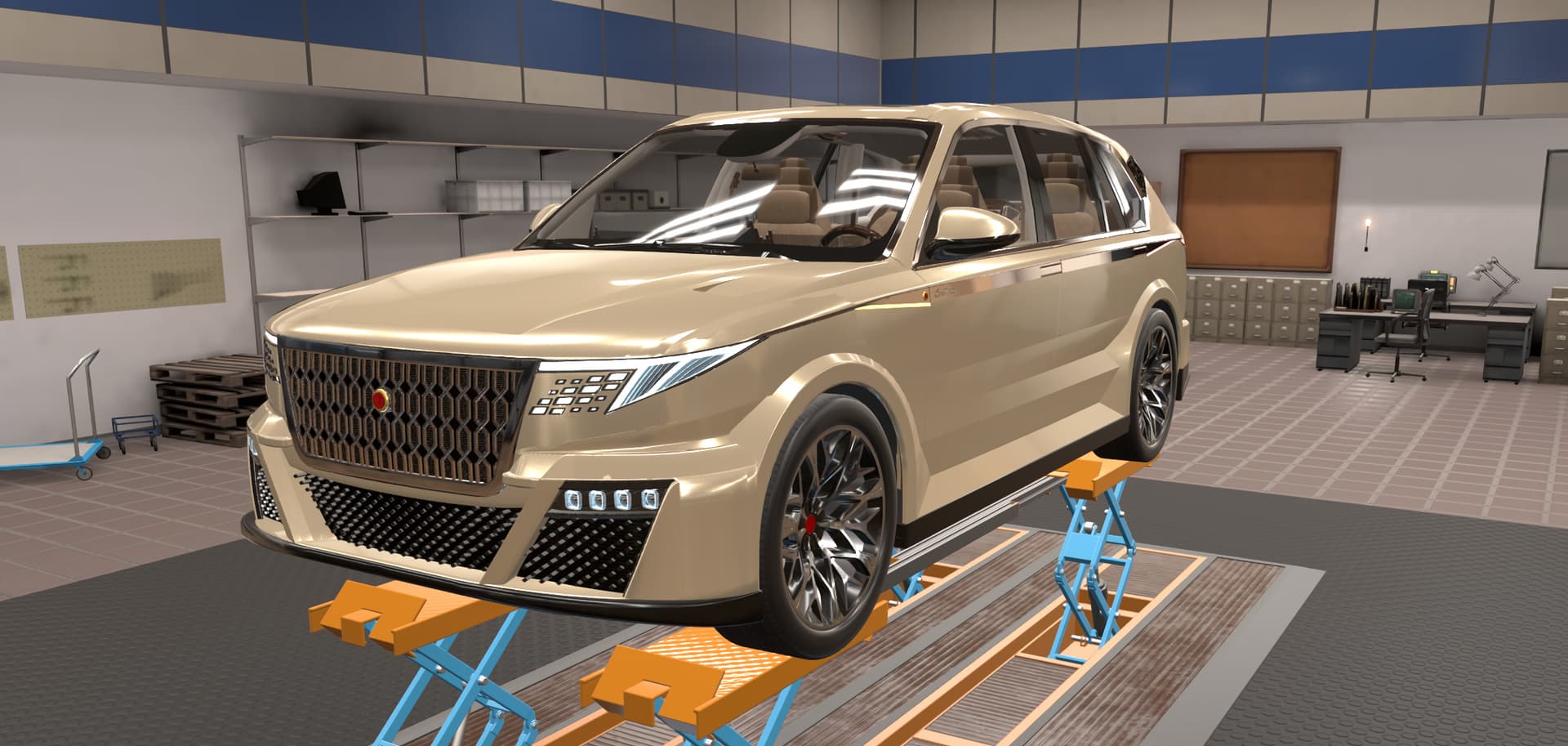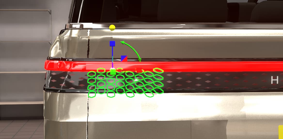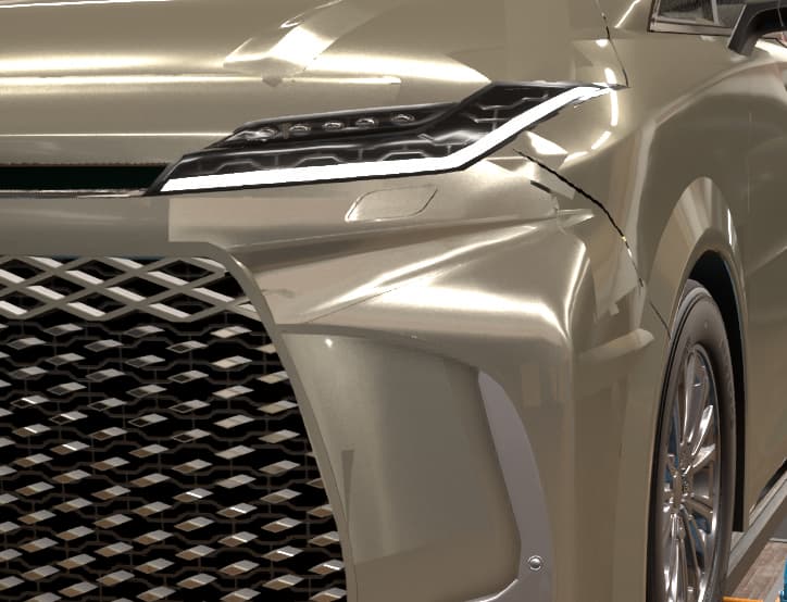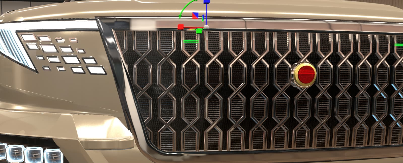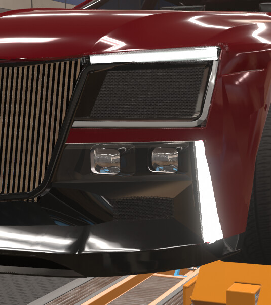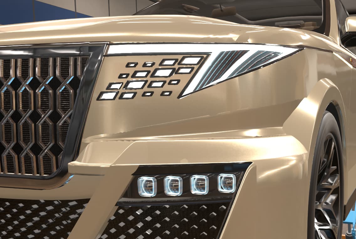 This front end design definitely gives off a luxury feel to it. While there are smoother ways of doing the transition from grille to body, using these fixtures is definitely a clever way to approach it, without necessitating the use of a ton of fixtures and painstakingly placing them down manually