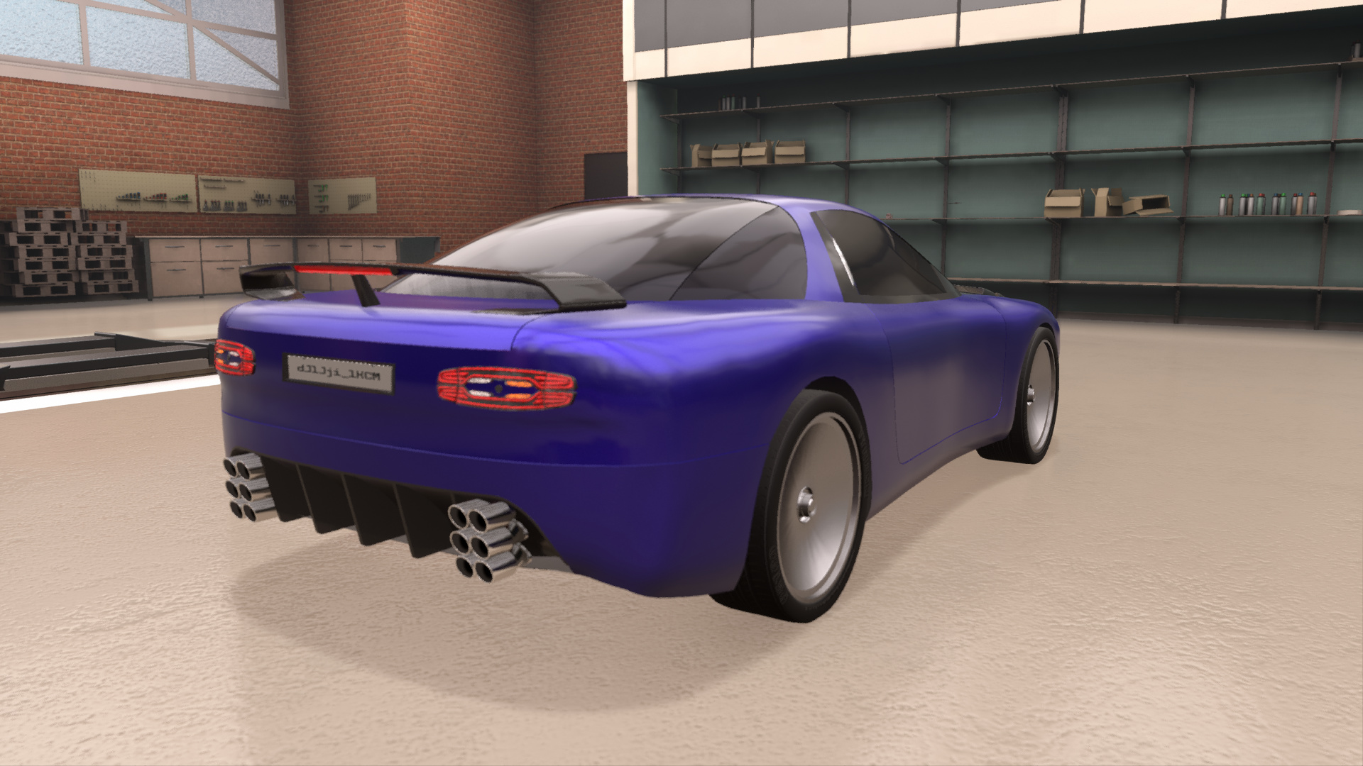 Get around to the back, and you can see a huge rear diffuser, 12 exhaust pipes, (one for each cylinder, of course,) carbon fiber wing hand crafted to suck in air and keep you glued to the ground, advanced LED taillights, and government enforced liscense-code.
