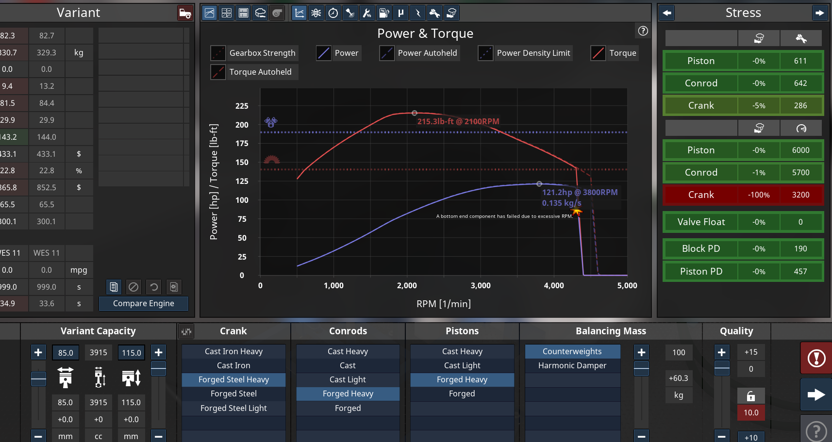 an engine with a reasonable, over-square profile that should be able to rev out to like 5000 rpm implodes when run with tech available at base +5 techpool.