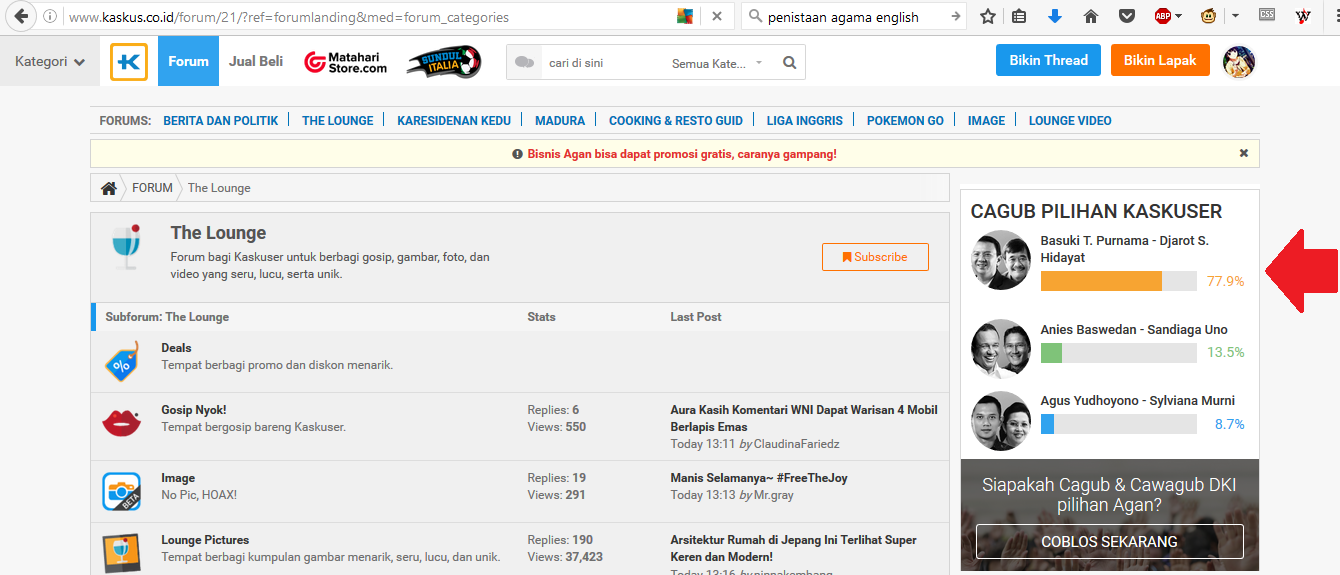 in fact, even with these cases going on, our largest internet forum in Indonesia held a survey on who are they gonna vote for, for the next governor. and you know what?