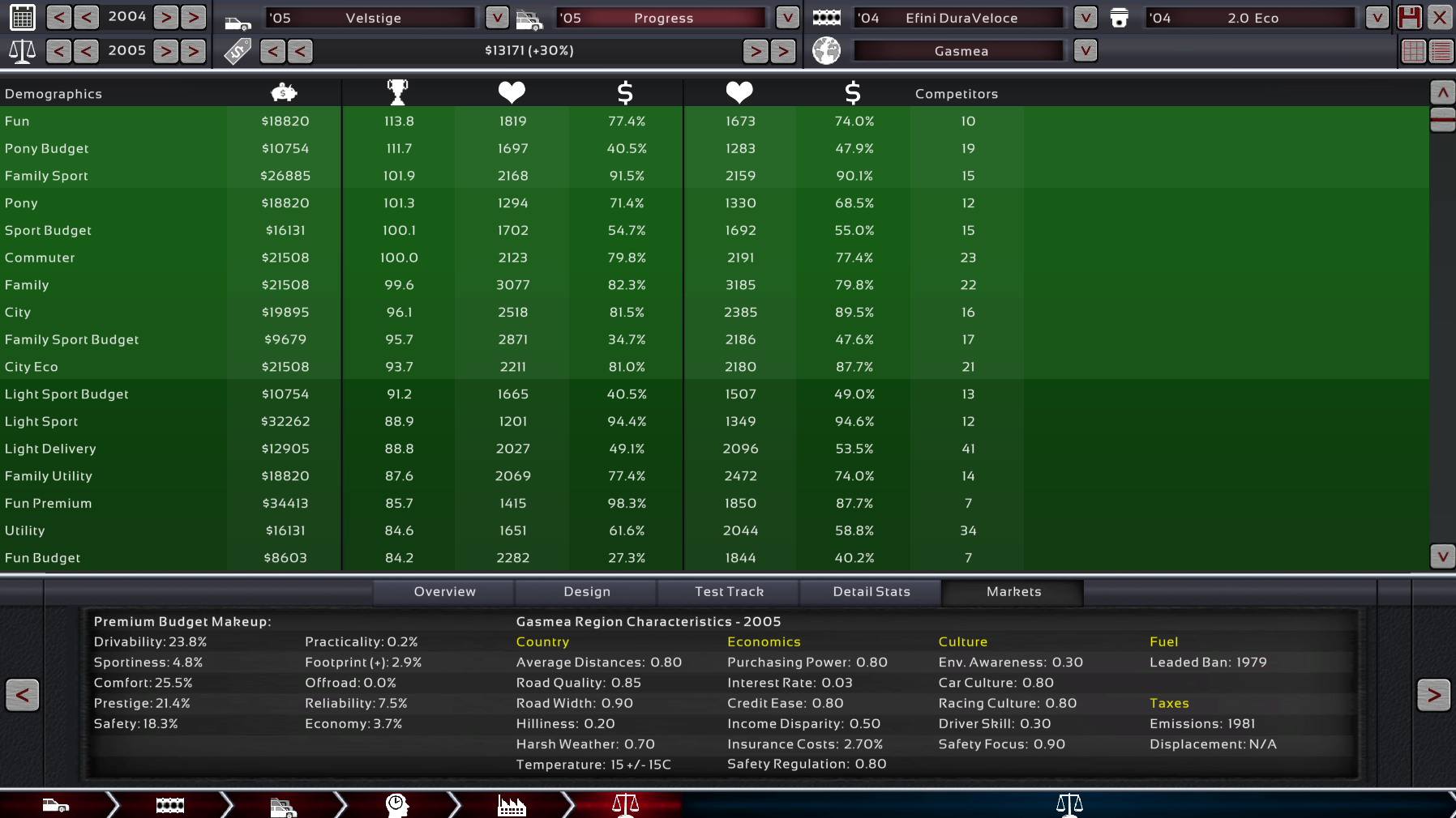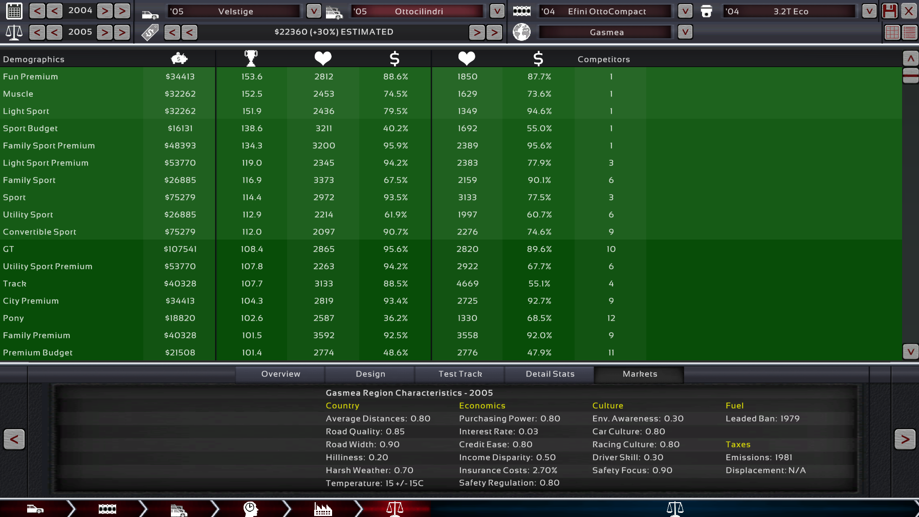 Ottocilindri : Weird small-displacement dohc turbo V8 AWD four-seater sedan, that combines the mechanics of the Lussive trim and two Milleseicento-trim engines joined together. Goes like sting, consumes nothing, costs little and is competitive despite its obvious weirdness.