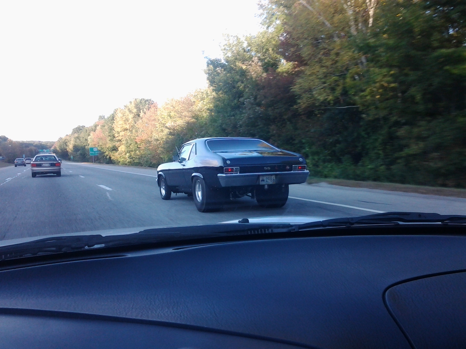 Happened upon this chevy nova on route 95 yesterday. Hard to see but there’s a nice 3 intake blower sticking up from the hood.
