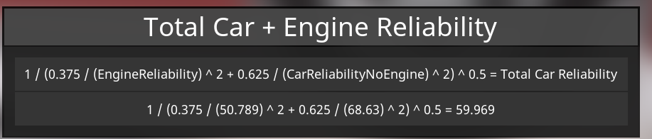 Hi everybody. I am struggling to understand how the game calculates reliability. Why does the general reliability formula use this (seemingly?) arbitrary engine reliability value? (Seems like I can’t upload 2 images, but the engine designer window sets the engine variant reliability at 75.1) Where does that come from? Thank you