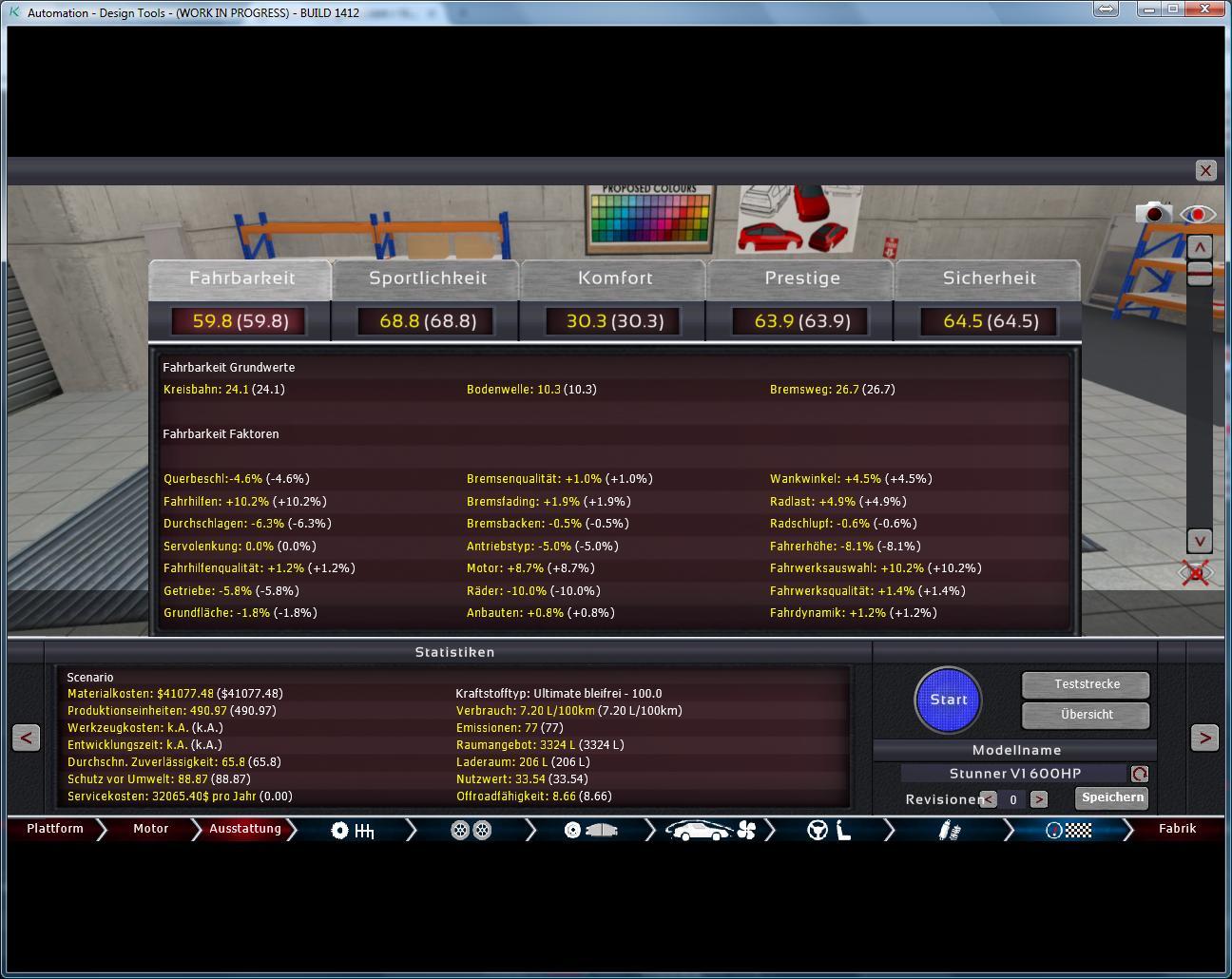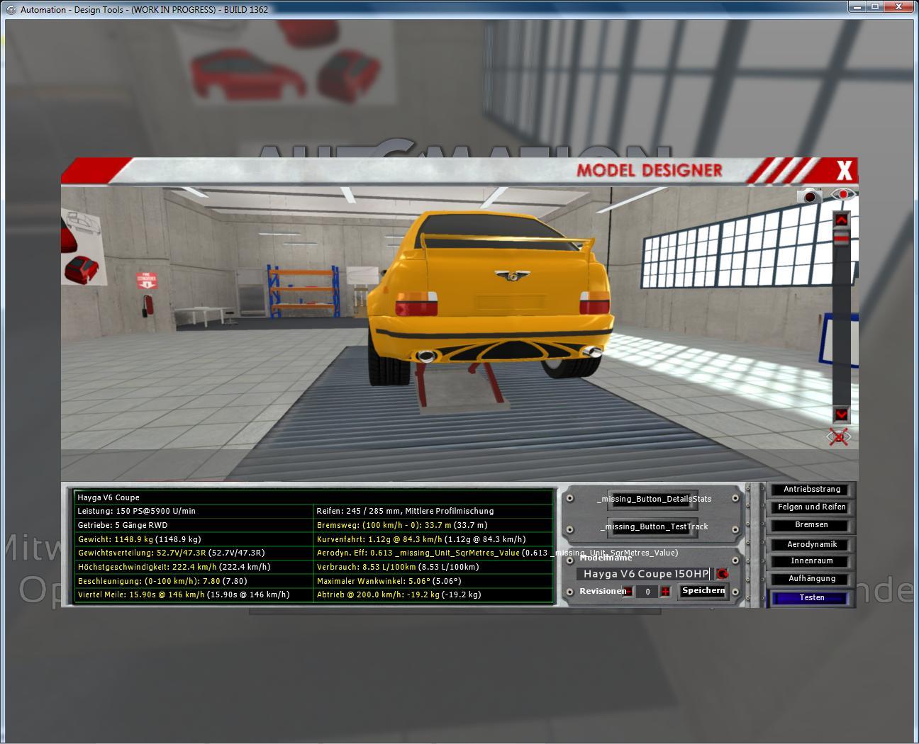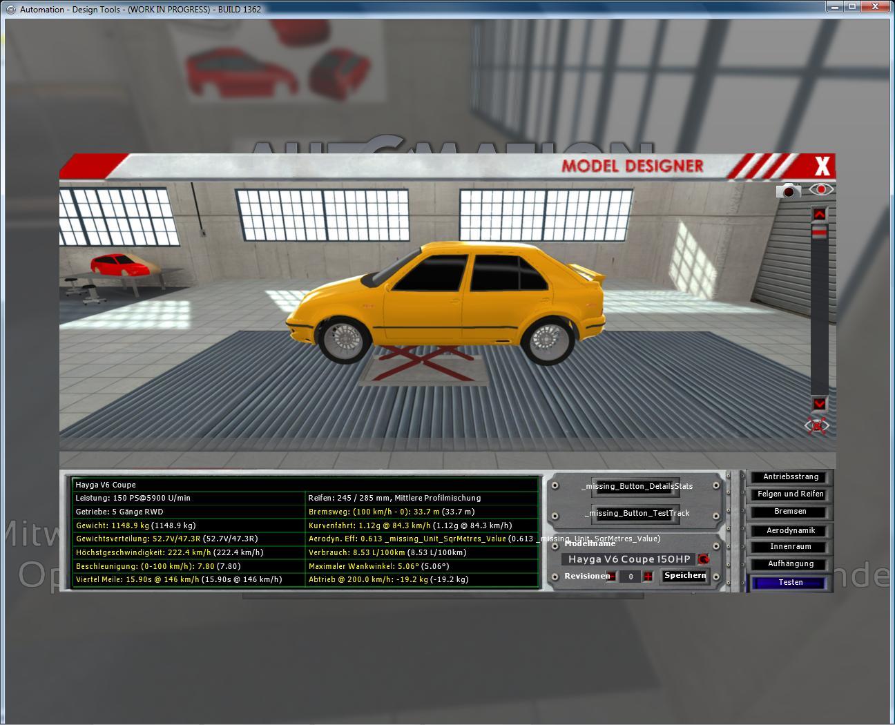 So with the V5 the official story of the Hayga is done but i created an inoffical V6 that when you have a look at the side, has a coupe touch with a little outcomming back. Not evryone’s favorite i guess, but i tried to give the V6 also a sporty touch. I also used a old 2.6l 150HP 4Zyl non Turbo engine, to get some differences shown in efficiency / fuel usage between turbo’s & non tubo’s - The engine is Using technique from mid 80’s so it’s not typicall for this car