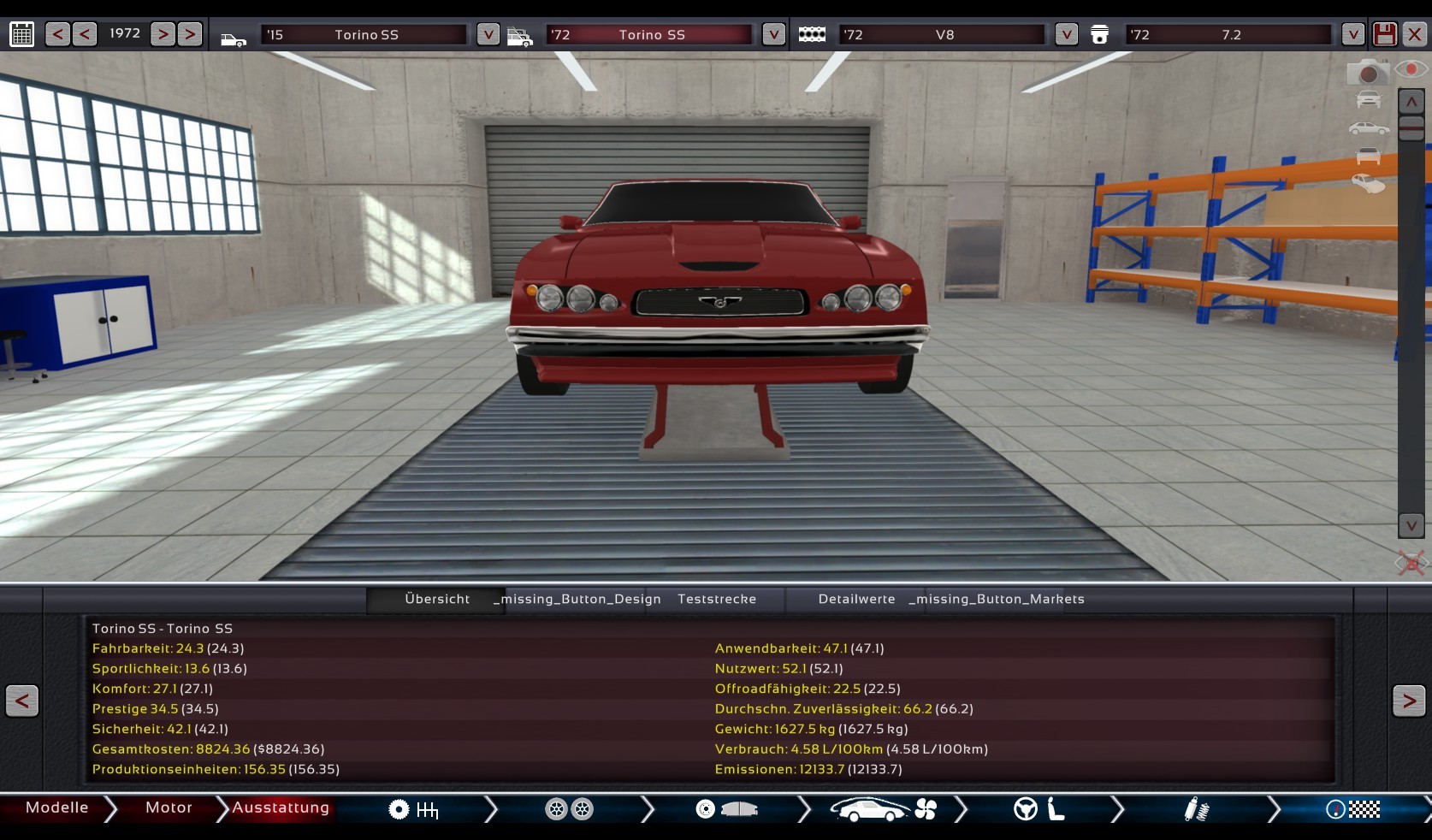 a few days back in game with unreal engine - Working to bring back alive the Grabber - but it’s gettin quit difficul to get good stats outta this - biggest issue with economy on the v6 it’s got a quit nice power-output and ~15L RON91 per 100Km are not that much in 1980 - 1990 are they?