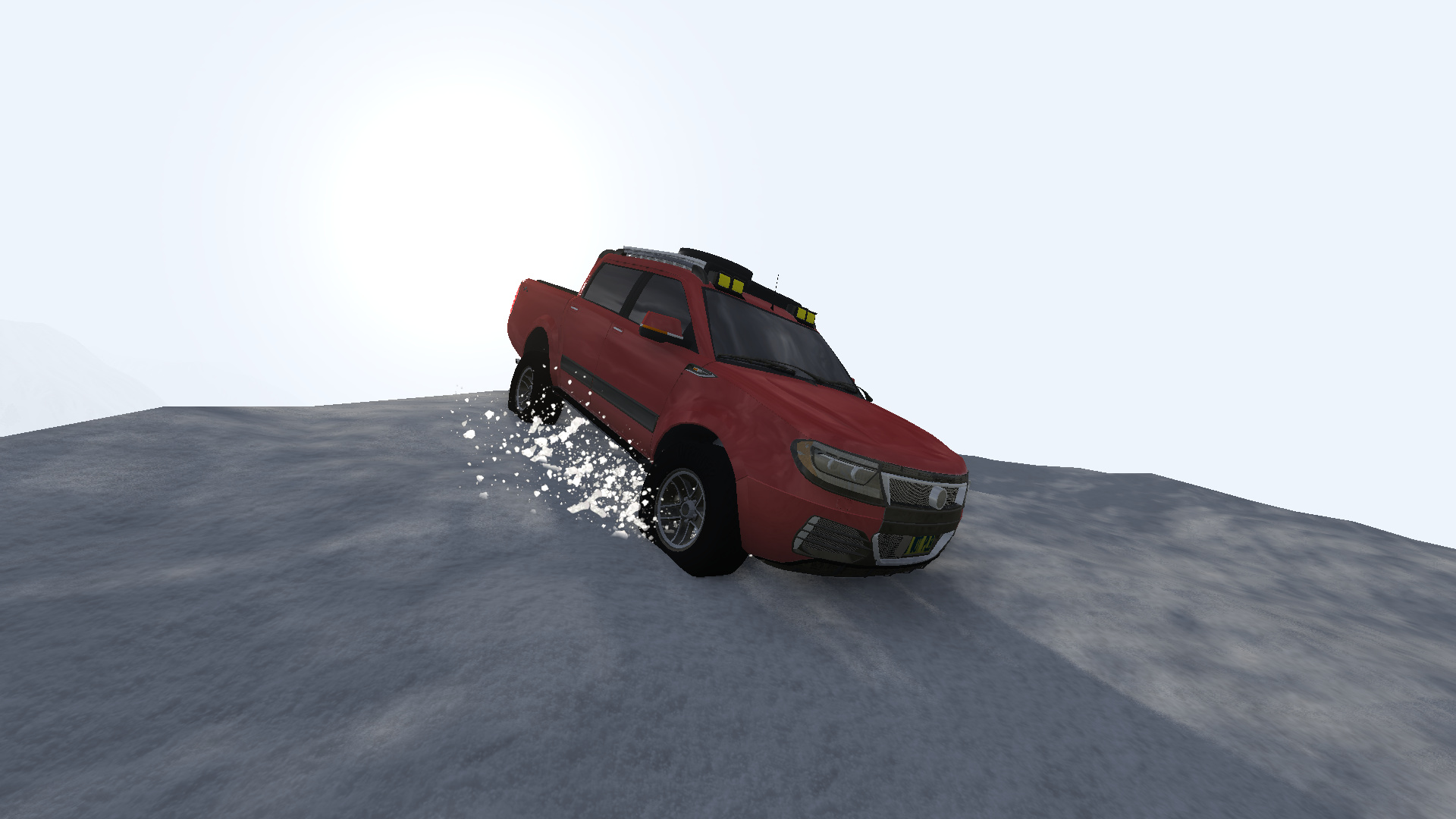 There was a problem with your truck, the grille dissapeared in my computer, even after re-importing. So I had to use the photo you posted instead. Grassy Antarctica with a paved road on the background, ofc