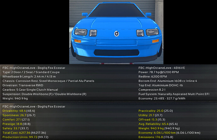 “SCHLOOP! It’s crazy! It’s like you’re the god of wind or something. And she’s still pretty lean. These engines, man. This one gets you a nice 220 horsepower and I’m happy to say that the weight’s about the same after the conversion, thanks to the interior being way lighter and less fancy. Redline’s at 6400 so if you like the base model you’ll just love going sport. So, the…”