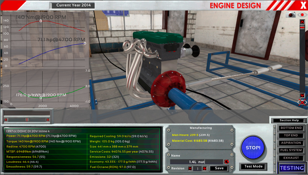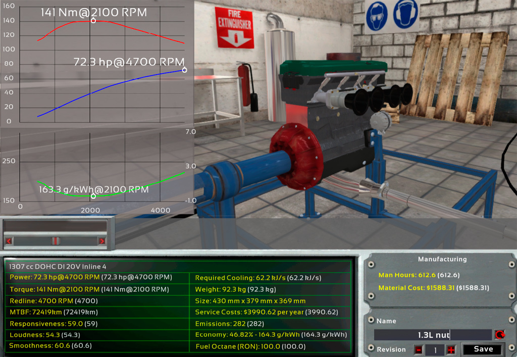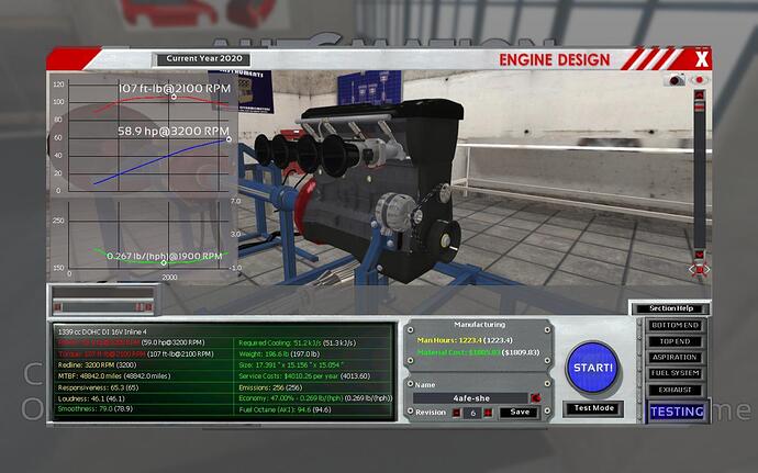 My inline 6 Turbo engine I decreased it to a 1.6L to fit in the current car bodies and it gets 63mpg in the hatch of course when you decrease the size the fuel efficiency goes down to like 25%