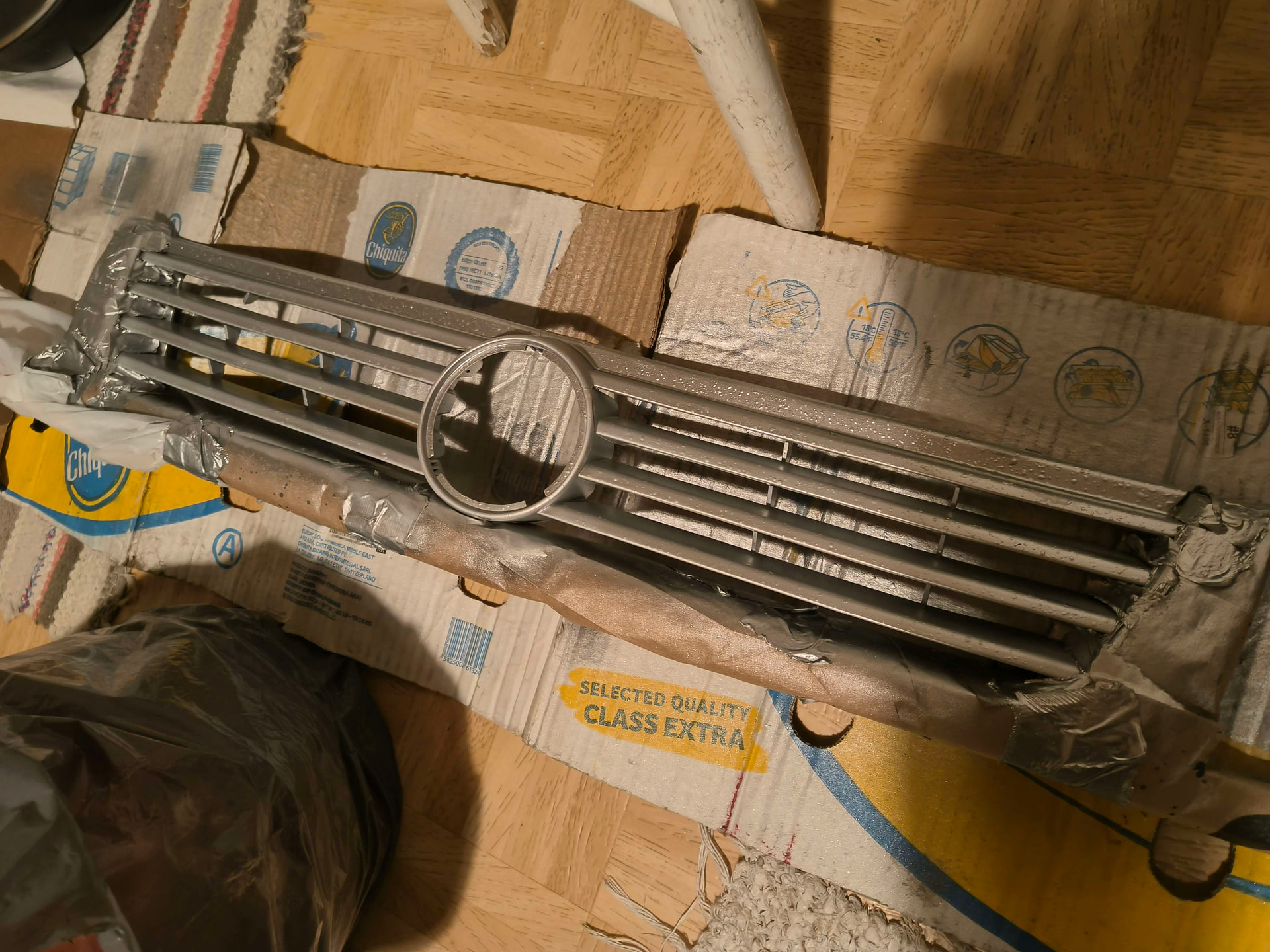 So I painted my grille in the rain using metallic silver rim paint. It was as close to chrome as I could get it. And much to my surprise, it actually doesn’t look all that bad.