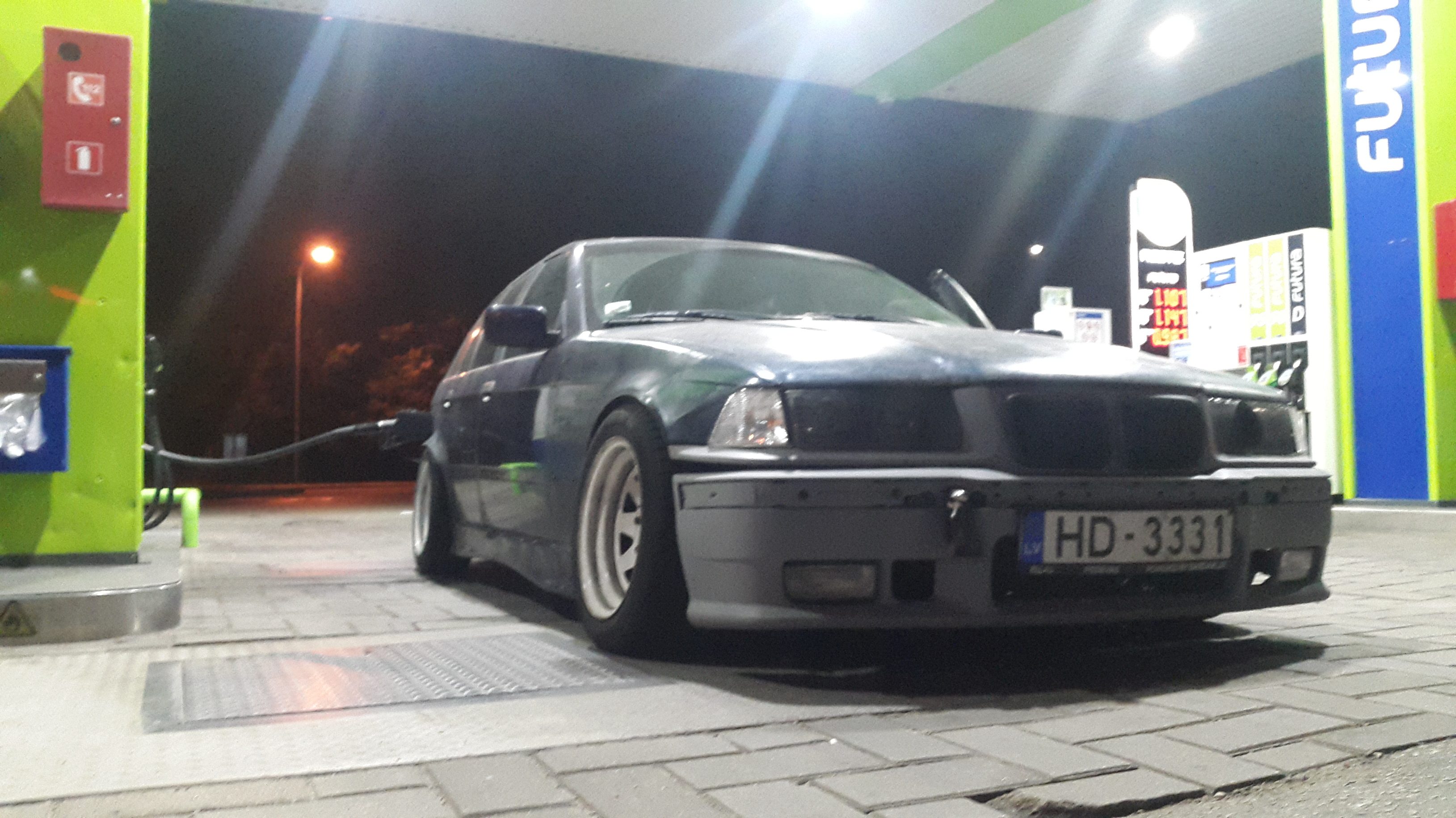So what we got is an car. It’s a BMW e36, it’s a touring model, which means it’s very versatile, and it’s seen things you people wouldn’t believe. First of all, you should know that at some point in 2016 it finished 5th out of 40+ contenders in the street class drift championship. What makes it even more confusing is that it’s a 2.3, and that it revs all the way to 8k (1.5 k more than a BMW engine should be comfortable with). The suspension is all coilovers + ARB’s, polyurethane, custom camber plates etc etc etc, so it’s a full blown track car pretending to be street car… AND… it’s legal for street use.