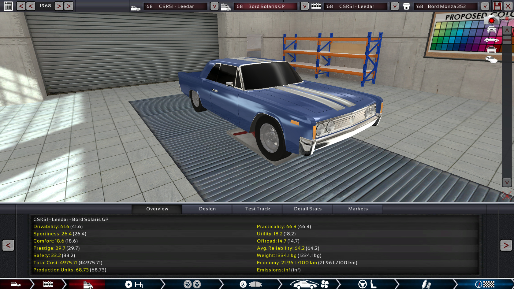 My CSR51 entry. Design goal was a cheap muscle car that did the business, without slavish adherence to historical realism on the engineering side. Came in third seemingly because of the cheap stereo and âmodestâ drag performance; appealing to a teenagerâs sense of frugality perhaps wasnât the best idea. I knew the cheap stereo might be a sore point, but I wanted to keep the price estimate under $10,000 without touching quality sliders (itâs $9900).