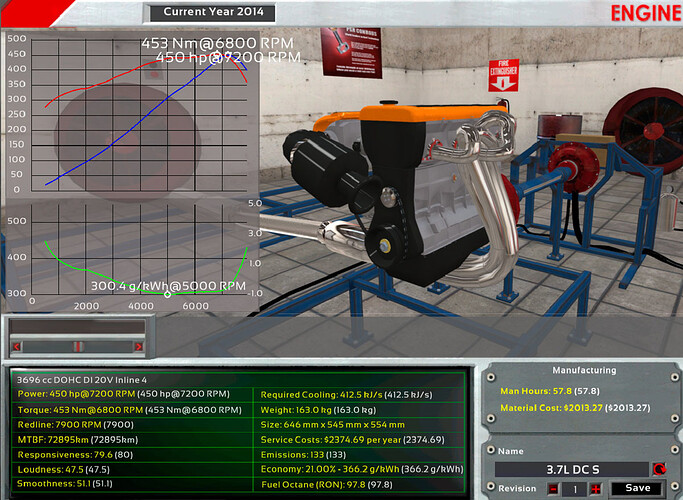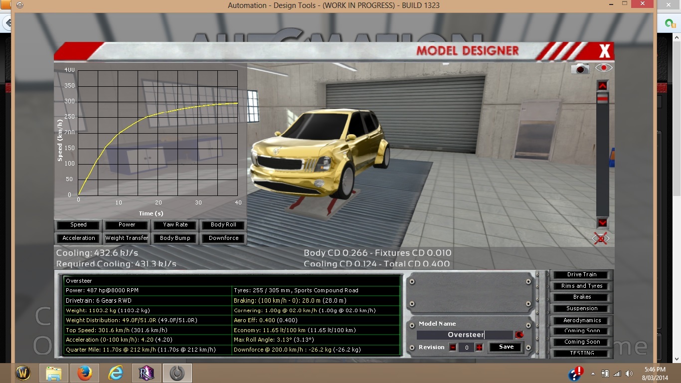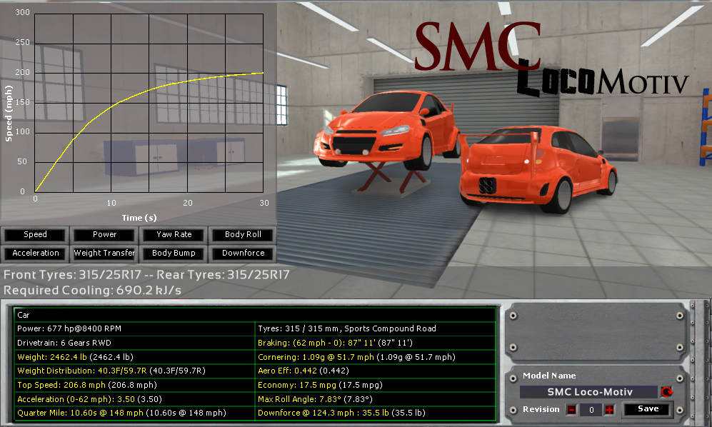 Most street driven track cars spend very little time at 200km/hr and above. That aside I’m running sports compound road tyres, a 6 speed box, 50/50 weight distribution and a relatively low cornering coefficient as a result. If I upgraded all these attributes it’ll be quicker in the simulation but it’ll also cost $700/tyre, be ridiculously expensive to rebuild the box and be tail heavy in reality (massive rear weight bias in acceleration/cornering G tests in this sim). Just not my goal for this design.