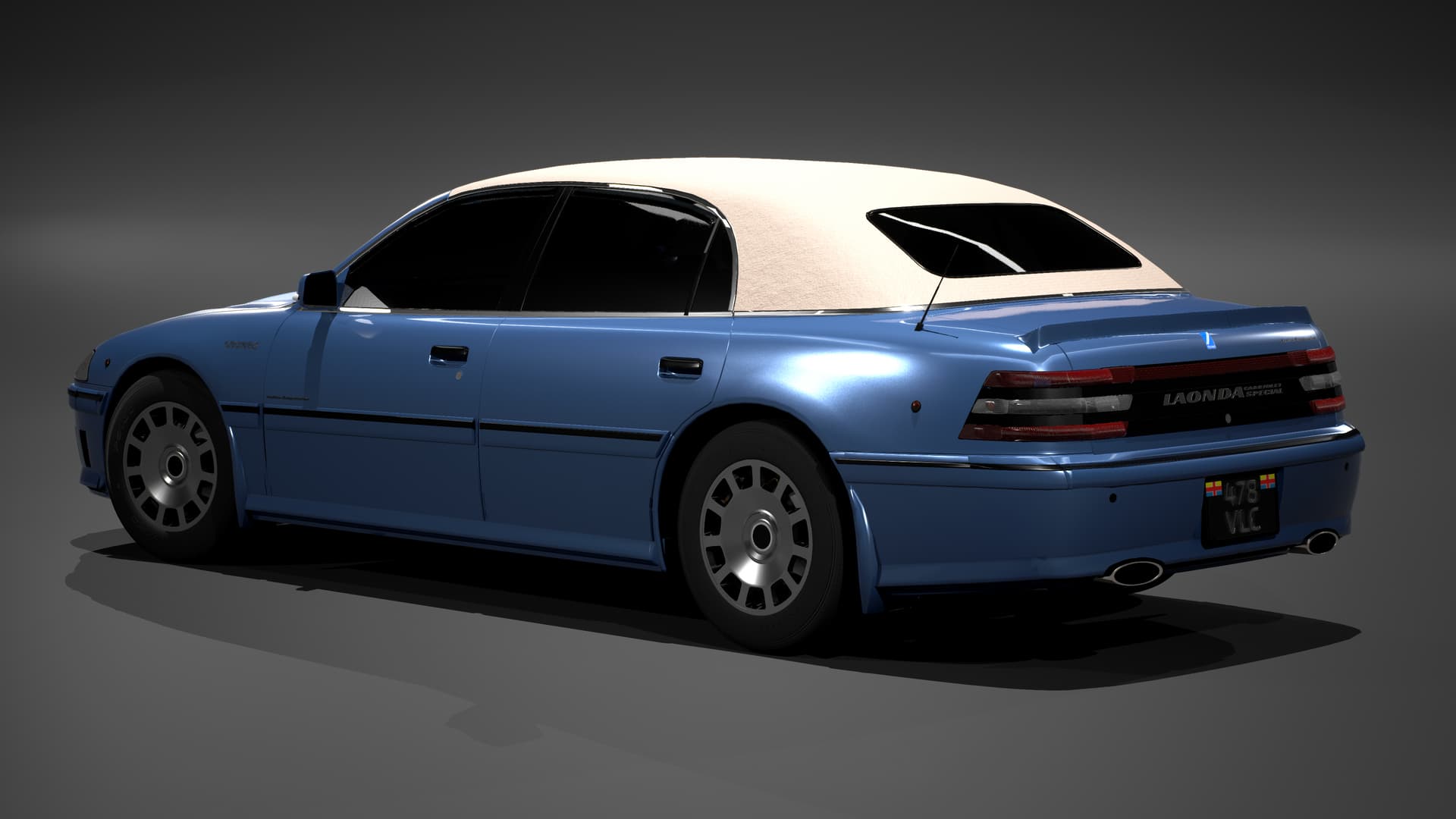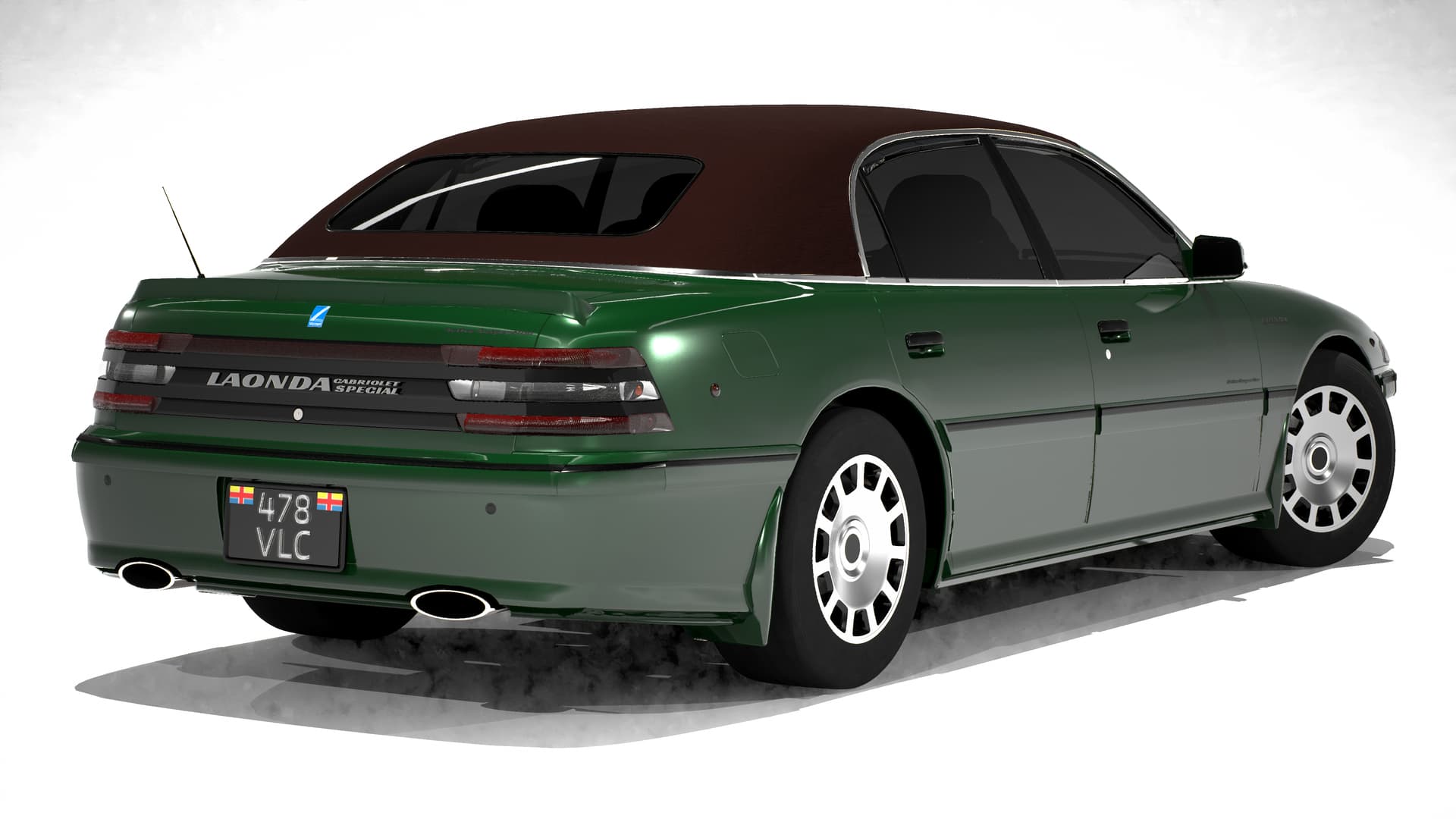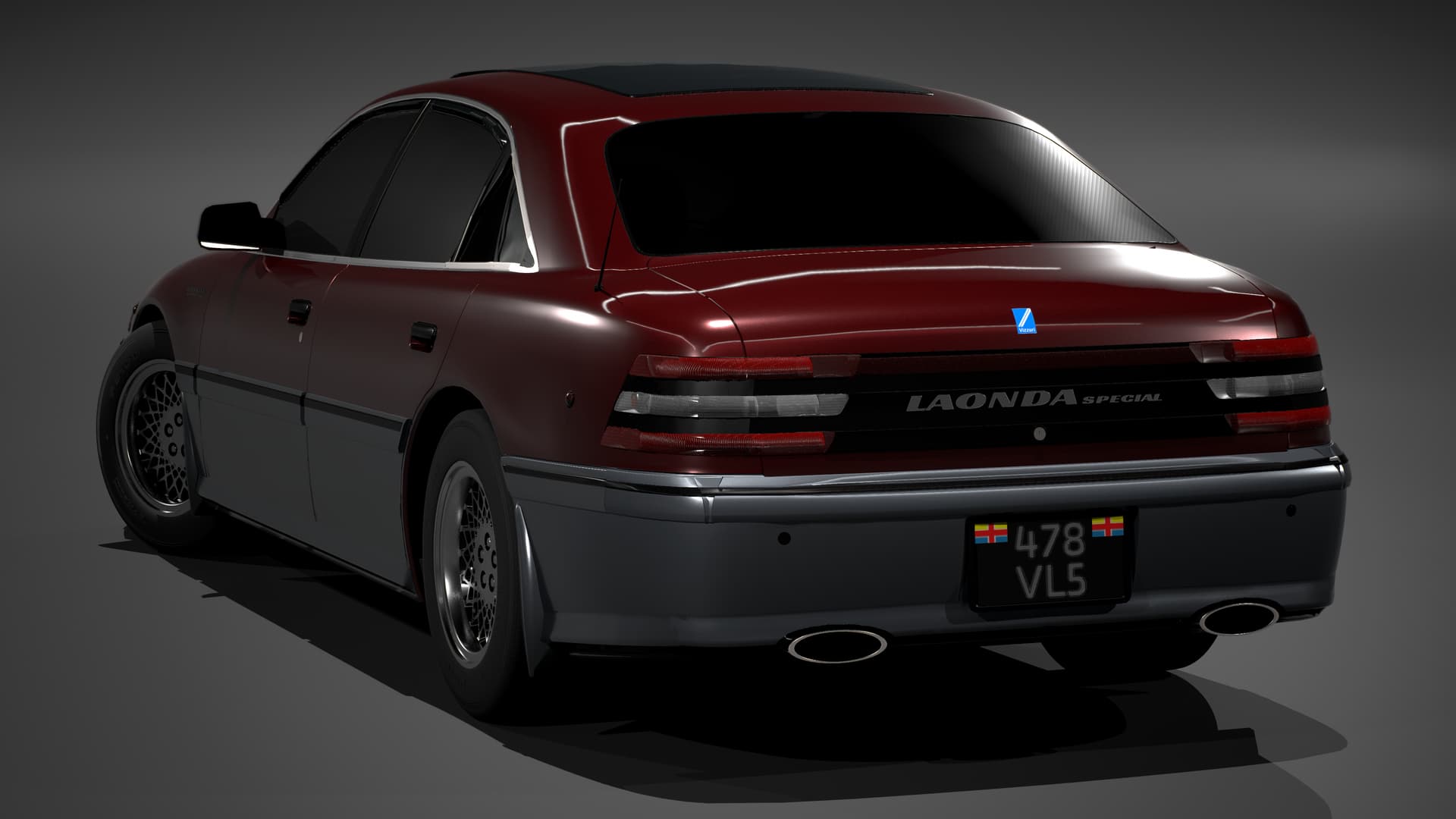 The smooth and sleekness of the third generation was carried onto fourth, with a new aerodynamic shape and extra cabin space with a sloping roofline along the rear, pop-up headlights were removed to further help aerodynamics. The Laonda Special was offered with a 5-gear electronic automatic or 5-gear manual transmission running through a new AWD Viscous system, with a premium interior and premium cassette system as well as variable hydraulic steering paired with adaptive air suspension and advanced 90s safety equipment standard.