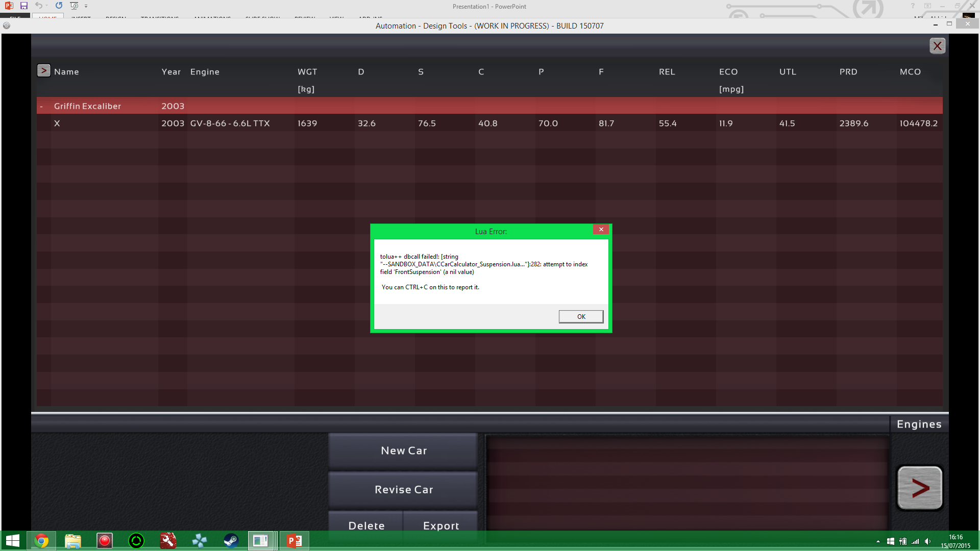 tolua++ dbcall failed!: [string “–SANDBOX_DATA\CCarCalculator_Suspension.lua…”]:282: attempt to index field ‘FrontSuspension’ (a nil value)