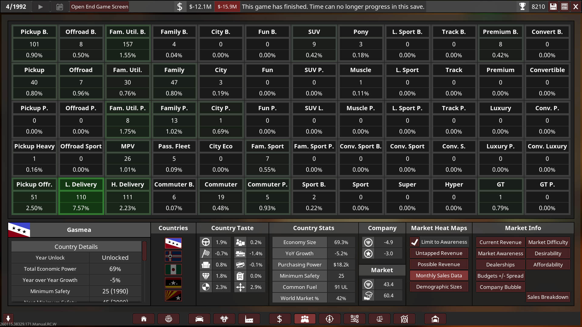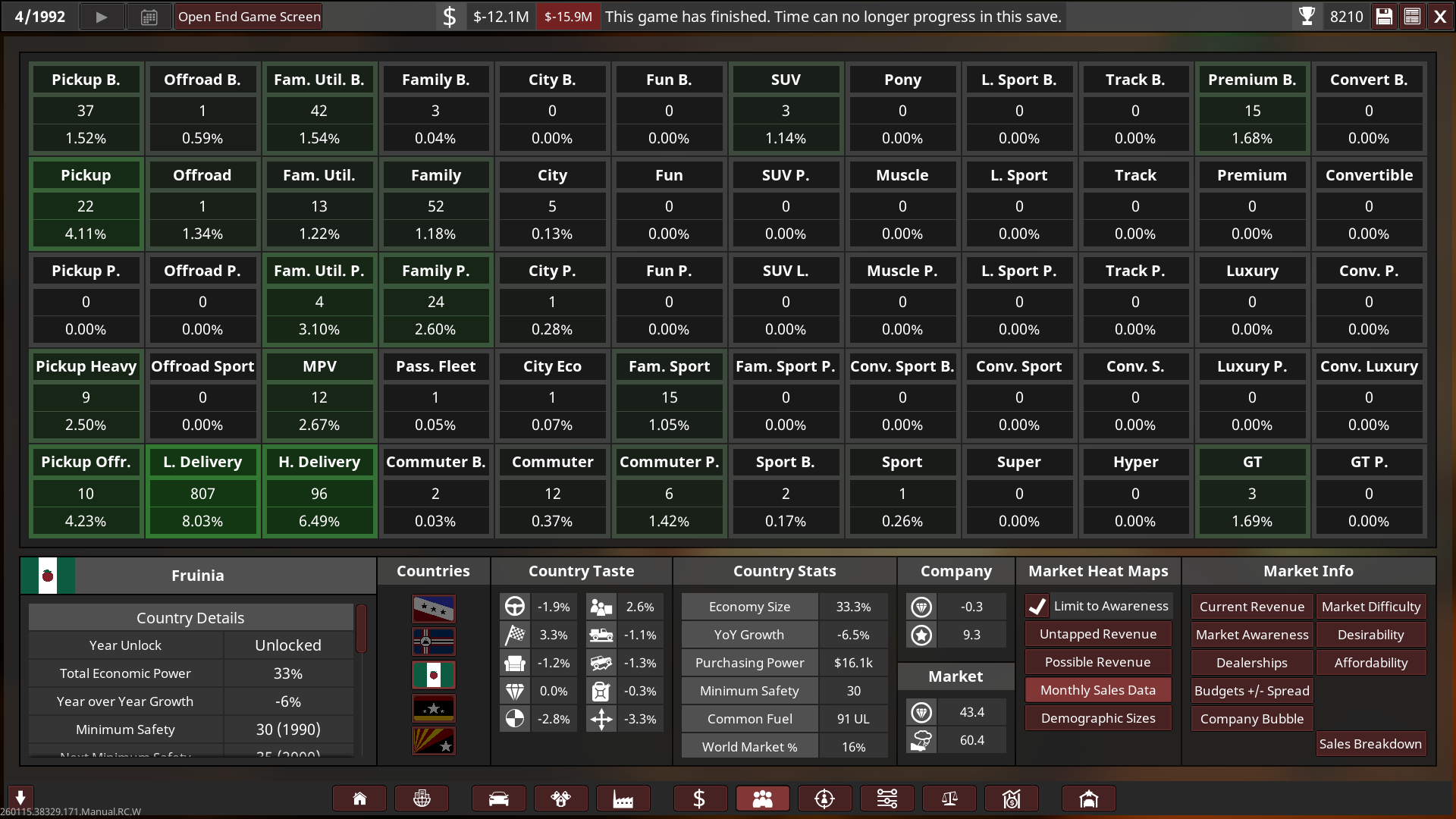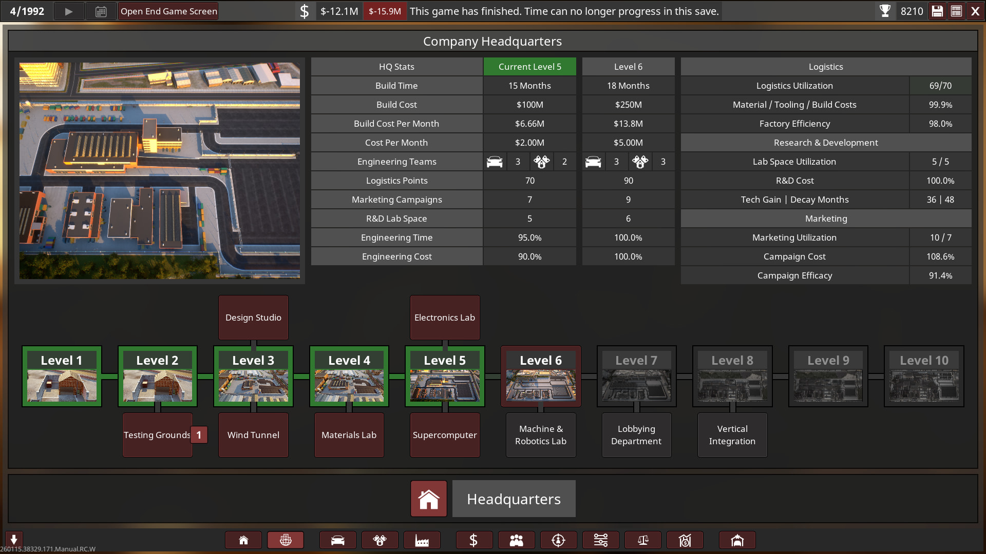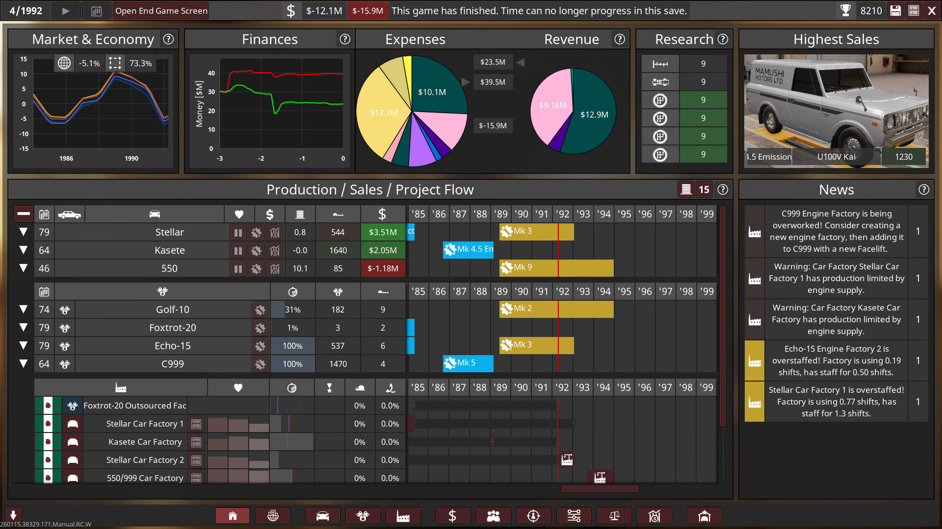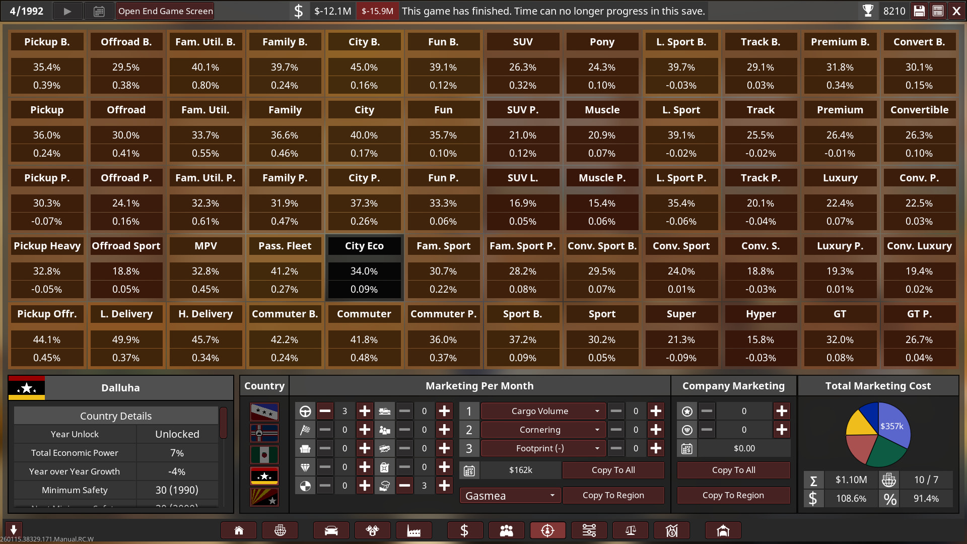 Unfortunately I went bankrupt in 1992 on the 1st campaign! So I will try again with a bit of an easier setting, turns out 2.2x was basically insane with a bit more money! I’m only a beginner at campaign so I need to keep learning and growing as I play it on an easier setup. Think of the 1st playthrough as more of an “alternative history” play.