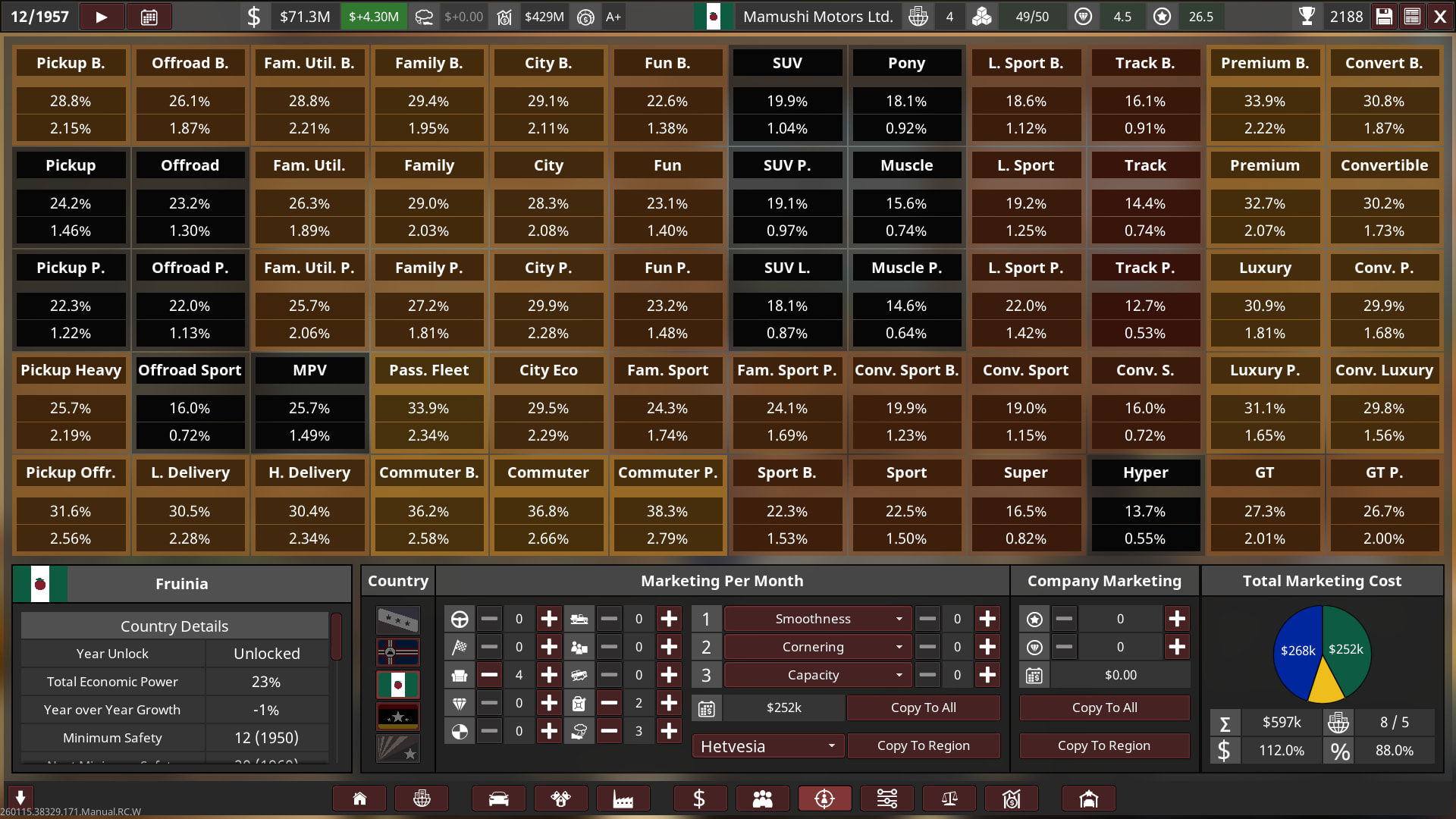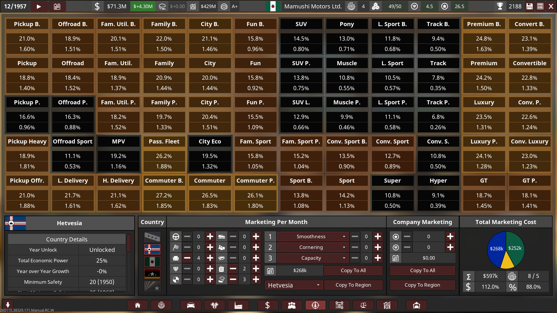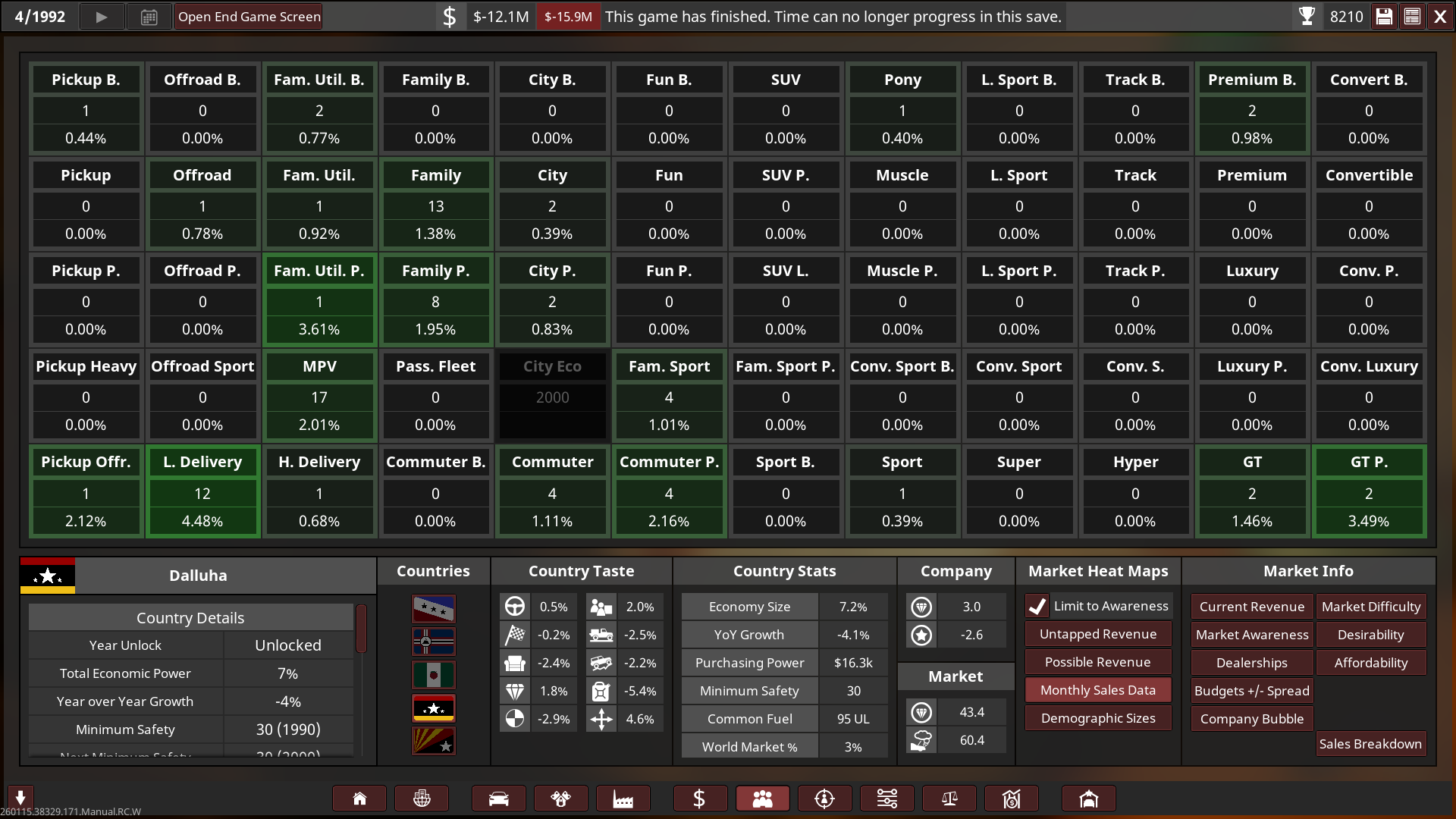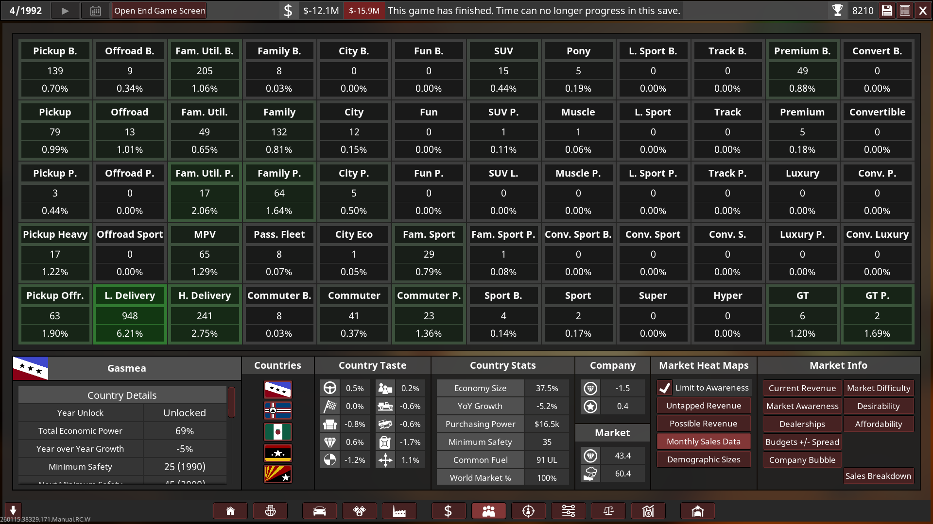 Unfortunately I went bankrupt in 1992 on the 1st campaign! So I will try again with a bit of an easier setting, turns out 2.2x was basically insane with a bit more money! I’m only a beginner at campaign so I need to keep learning and growing as I play it on an easier setup. Think of the 1st playthrough as more of an “alternative history” play.
