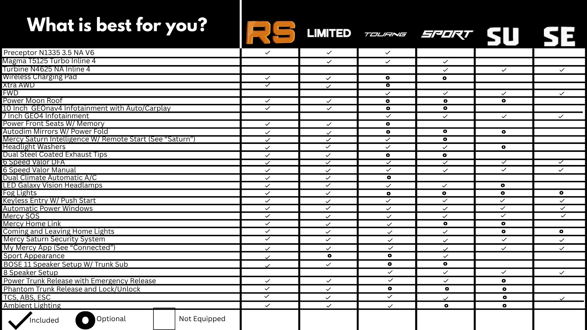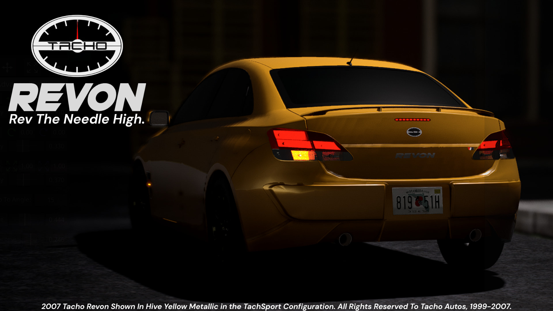 Tacho Motors Is the second newest brand made by Mercy, targeted at youthful drivers who wanted fun on a budget. Tacho is known for reliable, peppy and fun-to-drive cars that do not break the bank. Tacho was formed in 1995 and until 2006 faced serious challenges for such a niche market, almost being shut down for good. That was until the second-generation Revon was revealed. The Revon proved very successful, just enough to keep Tacho from closing down. However, even more successful was the newly designed 2007 Tacho Severa. The Severa was praised for its responsive twin-turbo V6 engine, fantastic fuel economy, available AWD, and bulletproof reliability. Tacho stands for Tachometer, meant to show how fun the brand is.