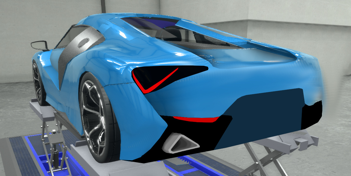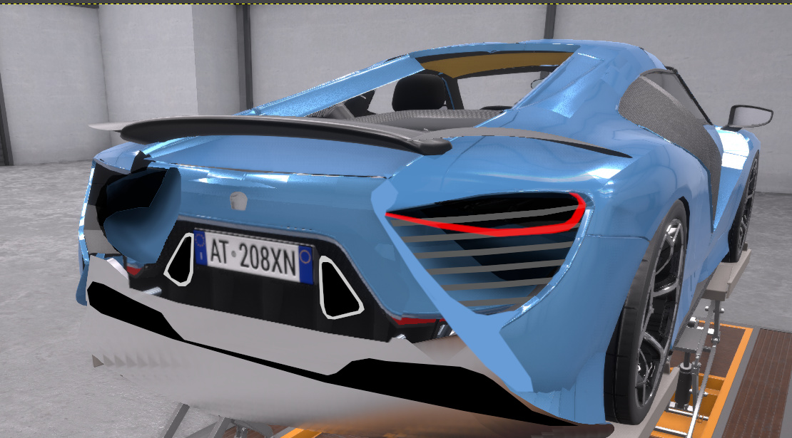 Here you can see some changes from the Automation version, like the indicator location (this was changed because I thought the bumper was a little barren, so I moved them there, however they are in the same place on the sedan version.) and headlamps.