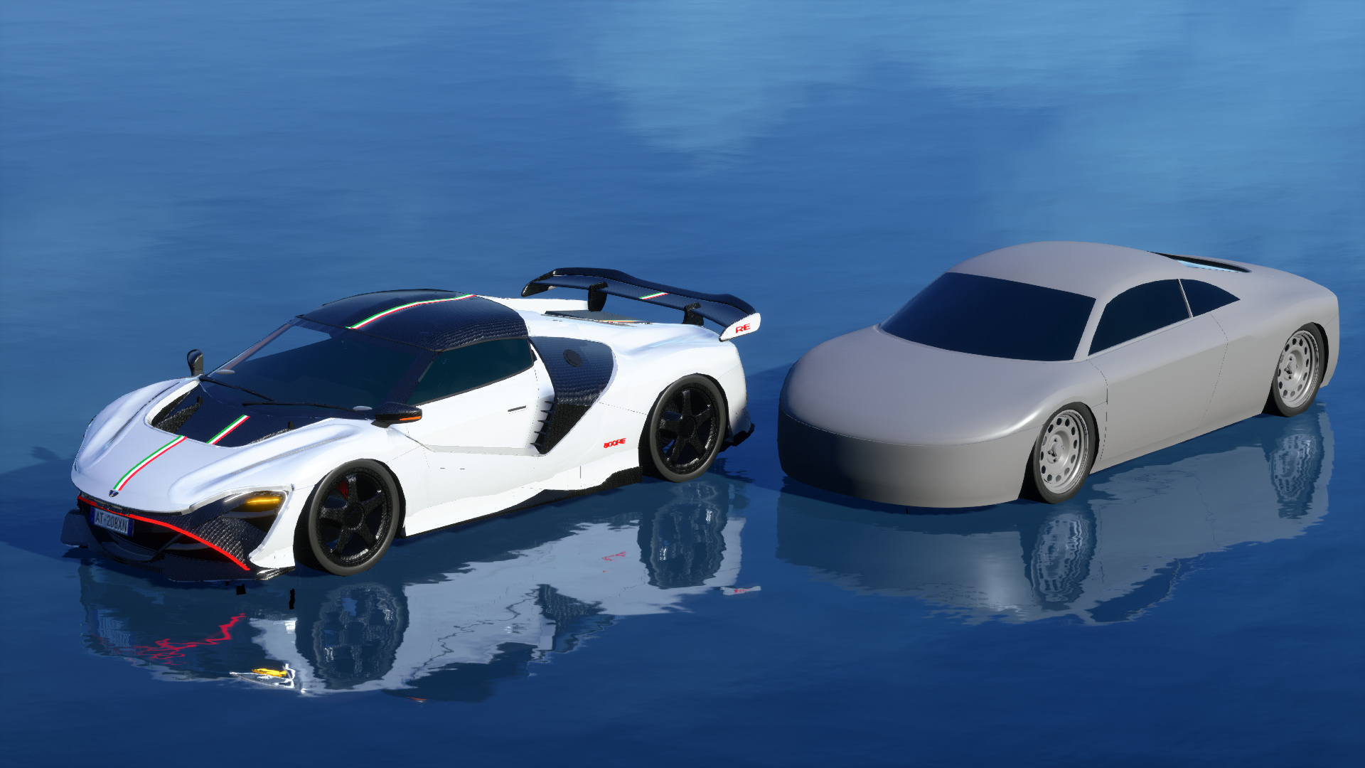 Not meant to be a factory race car, but more of a privately made race car, will definitely try to do this one up properly. Since the body doesn't really support large or wide wheels, I used another car that could have very large and wide wheels and hid it's body and chassis in the photo scene.