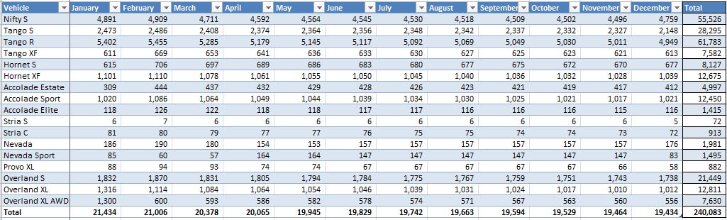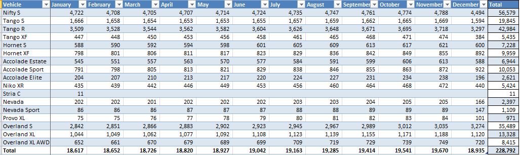Our new Nevada Sport pickup/SUV hybrid had a very good first year, selling 38,776 units.