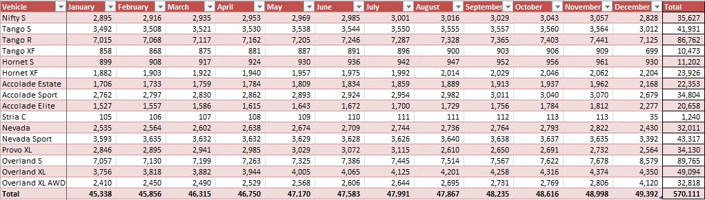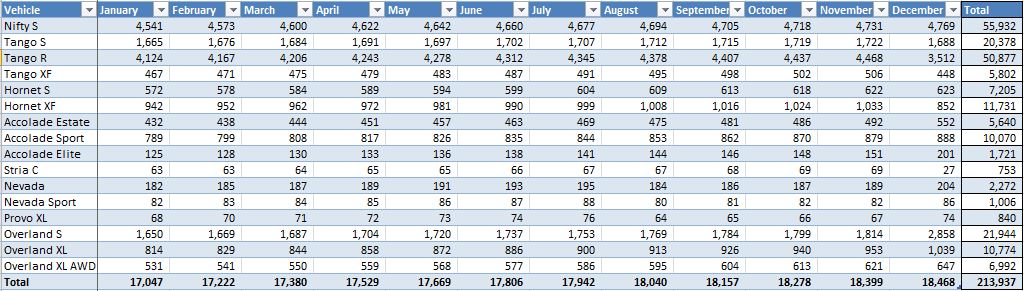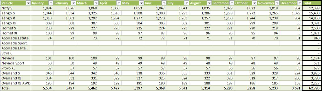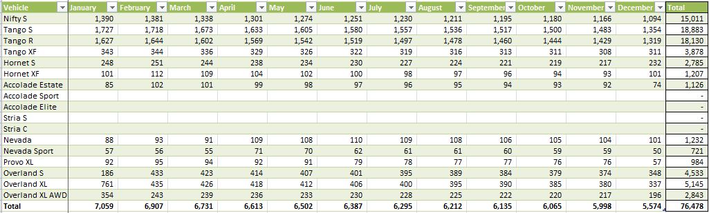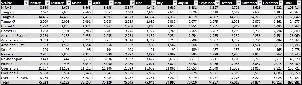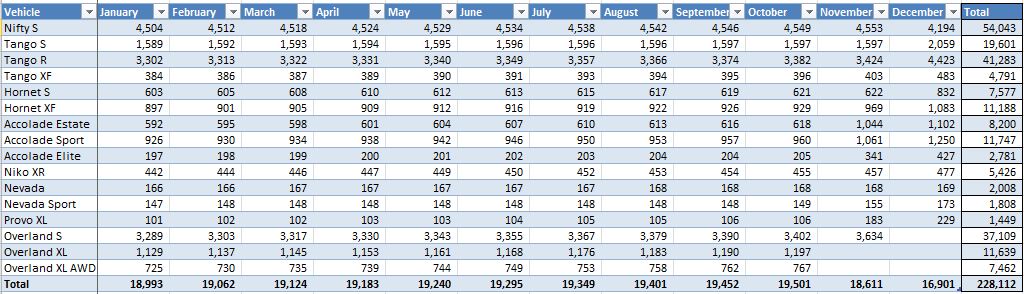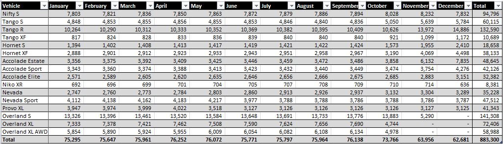 Our higher trimmed models did not fare as well. The larger Overland XL sold just 75,055 units.