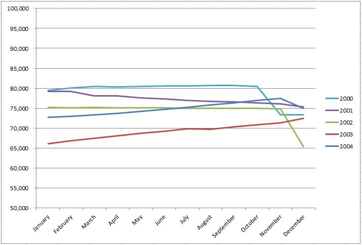 During 2001, Nassau sold 927,777 vehicles, down 23k from the previous year. In fact, other than an uptick in 1998, we’ve seen sales fall each year since our best year in 1996.