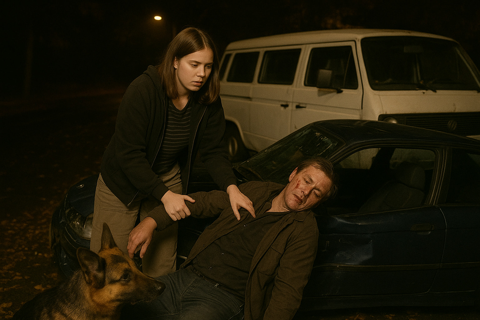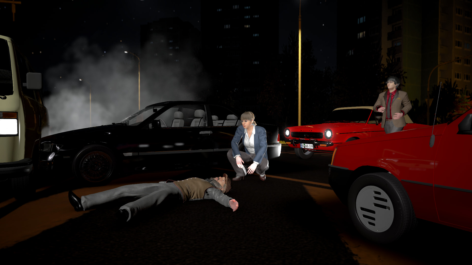 No, I see breathing activity. Carsten, grab the key! And then we run to the next phone box and call the ambulance. HURRY, THERE COMES A CAR!