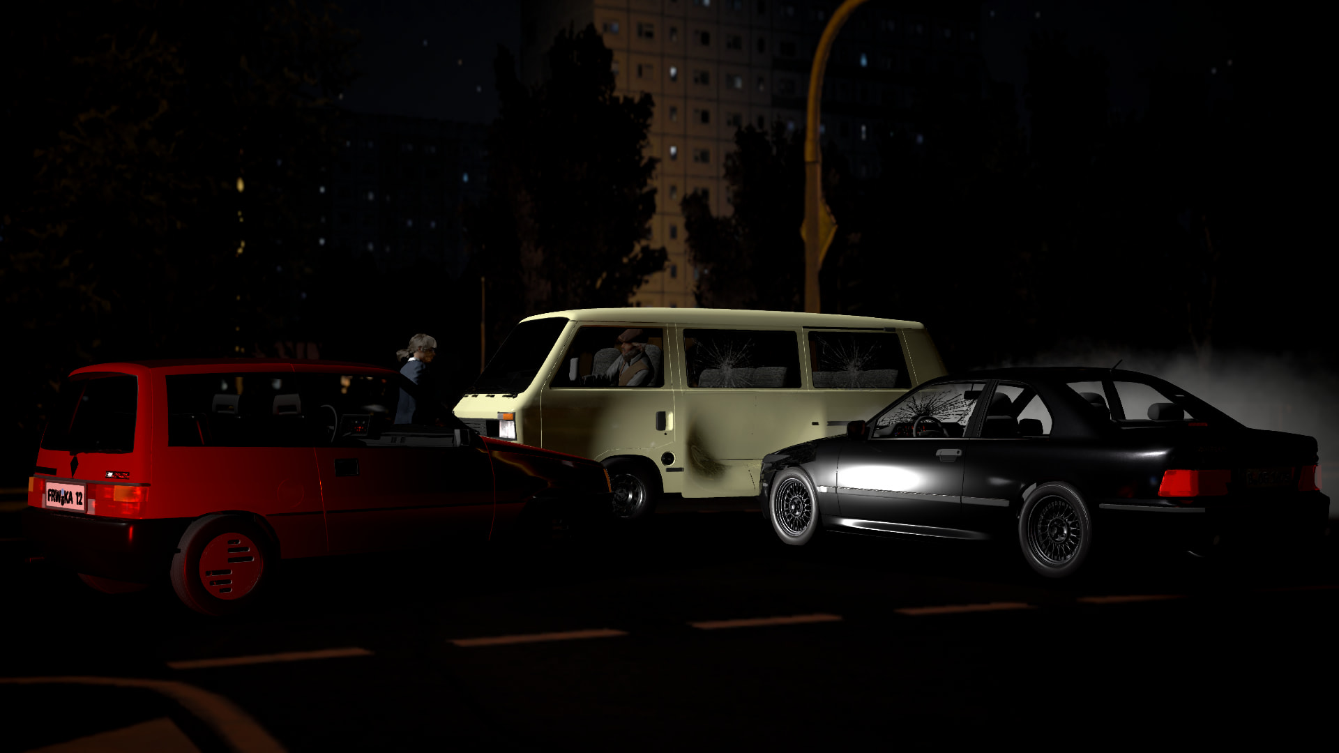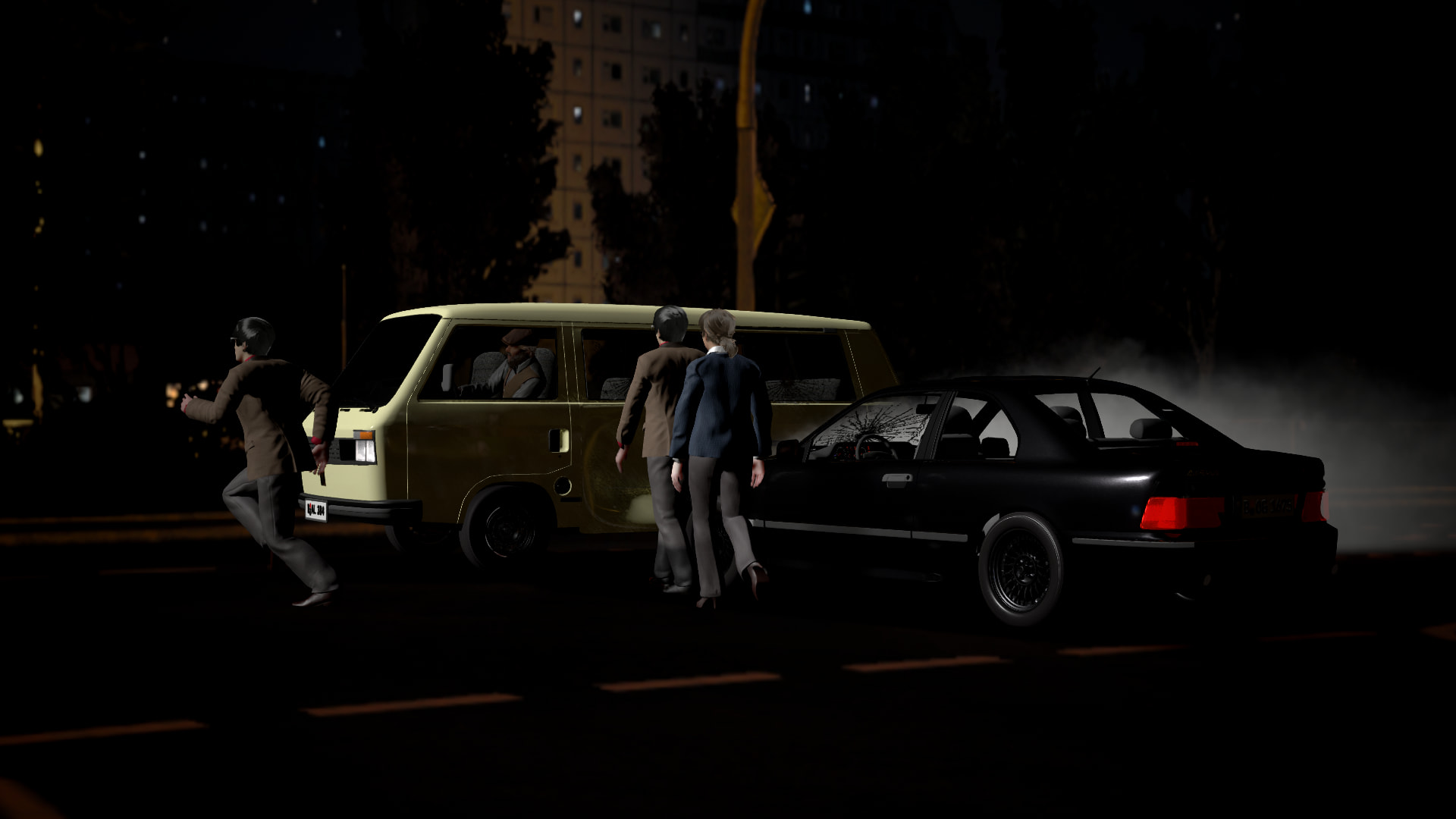 Mamba 12-3 to all units… suspect has been stopped. Driver escaped on foot, in the chaos I had no chance to see where.
