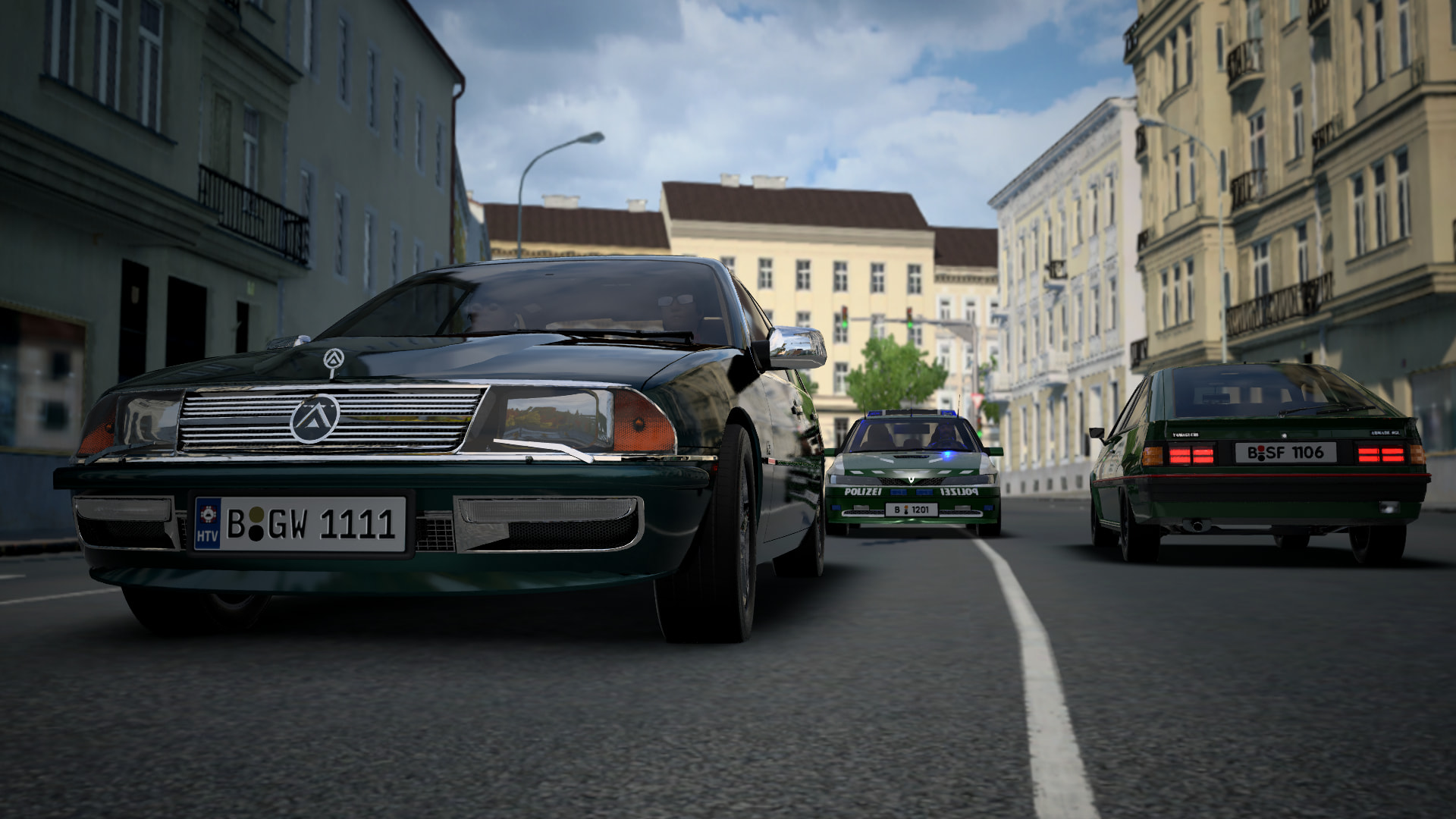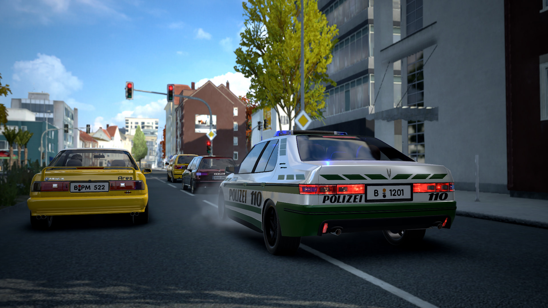 Mamba 12-3 to all units. The Merit just passed me on Turmstraße. Entering pursuit!