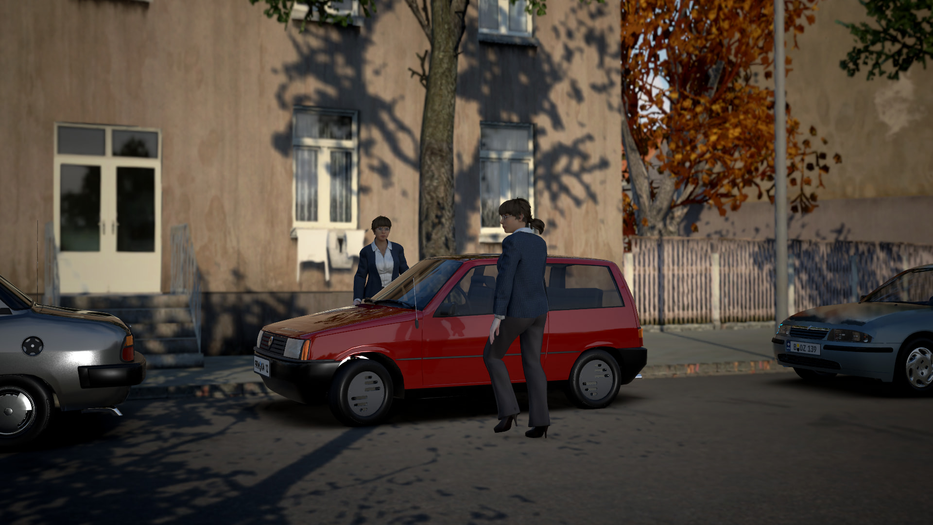On her way, Sarah encouters a dangerously driving Primus coupé, and barely avoids it, but is too concerned about her dog to bother with it.