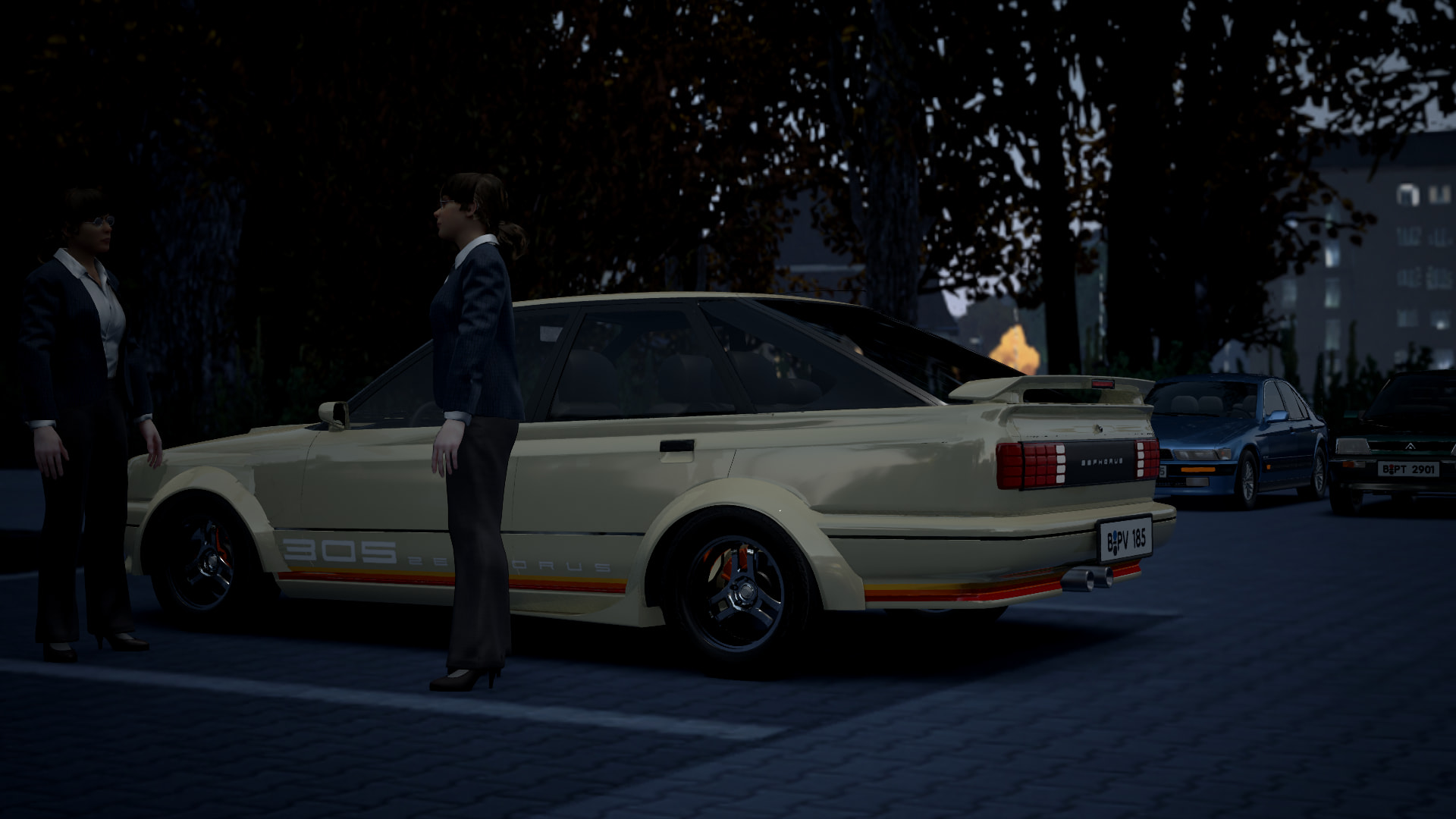 Now you are asking something from me…. all right, but not here, where we have possible withnesses. I`ll show you some lonely forest road nearby. Get in!