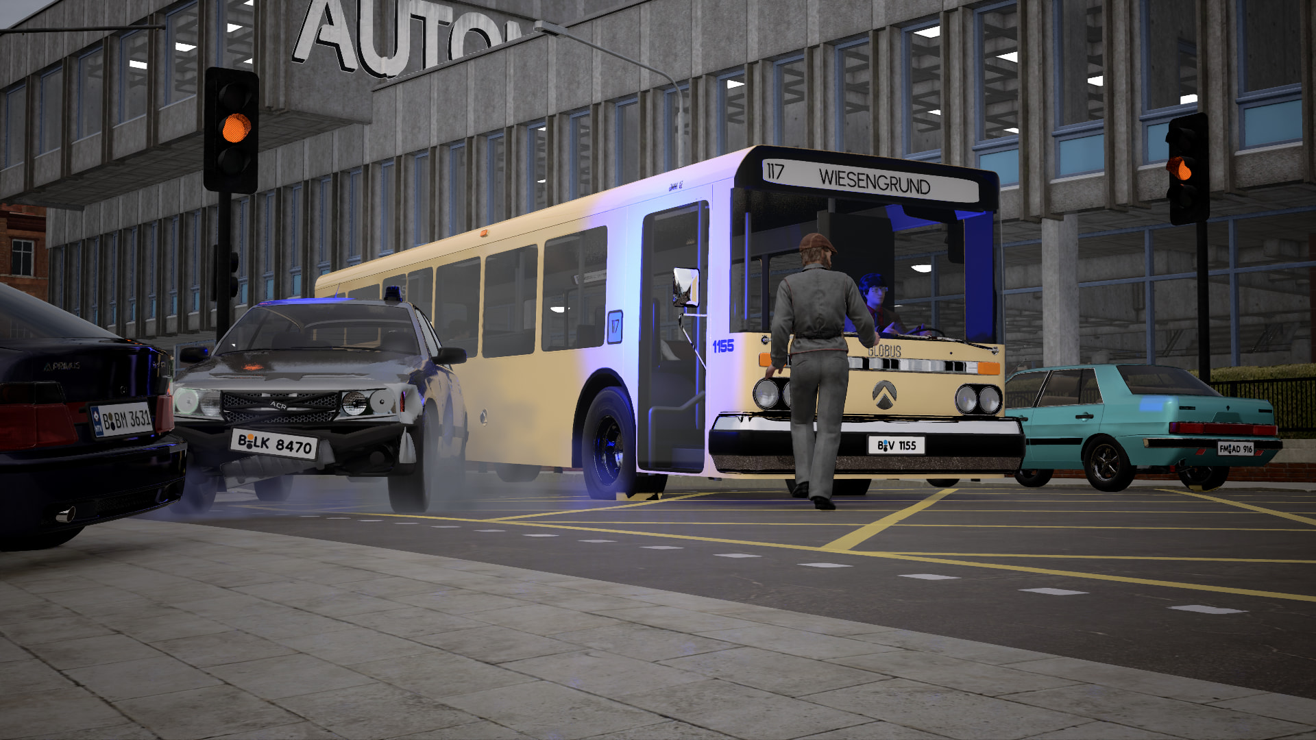 Mamba to all units, two cars stolen from the Miesens AG in the Robert-Schob-Straße, a green Imperator, registration Berlau-Gustav-Wilhelm-1111 and a lilac Merit, registration Berlau-Bertha-Martha-3631.