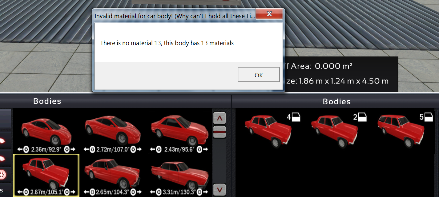 Rear engined and trying to select 5d variant of this body results in this message. Also a minor notice that the 70’s muscle seems to have different default morph’s on front end between 2d and 4d.
