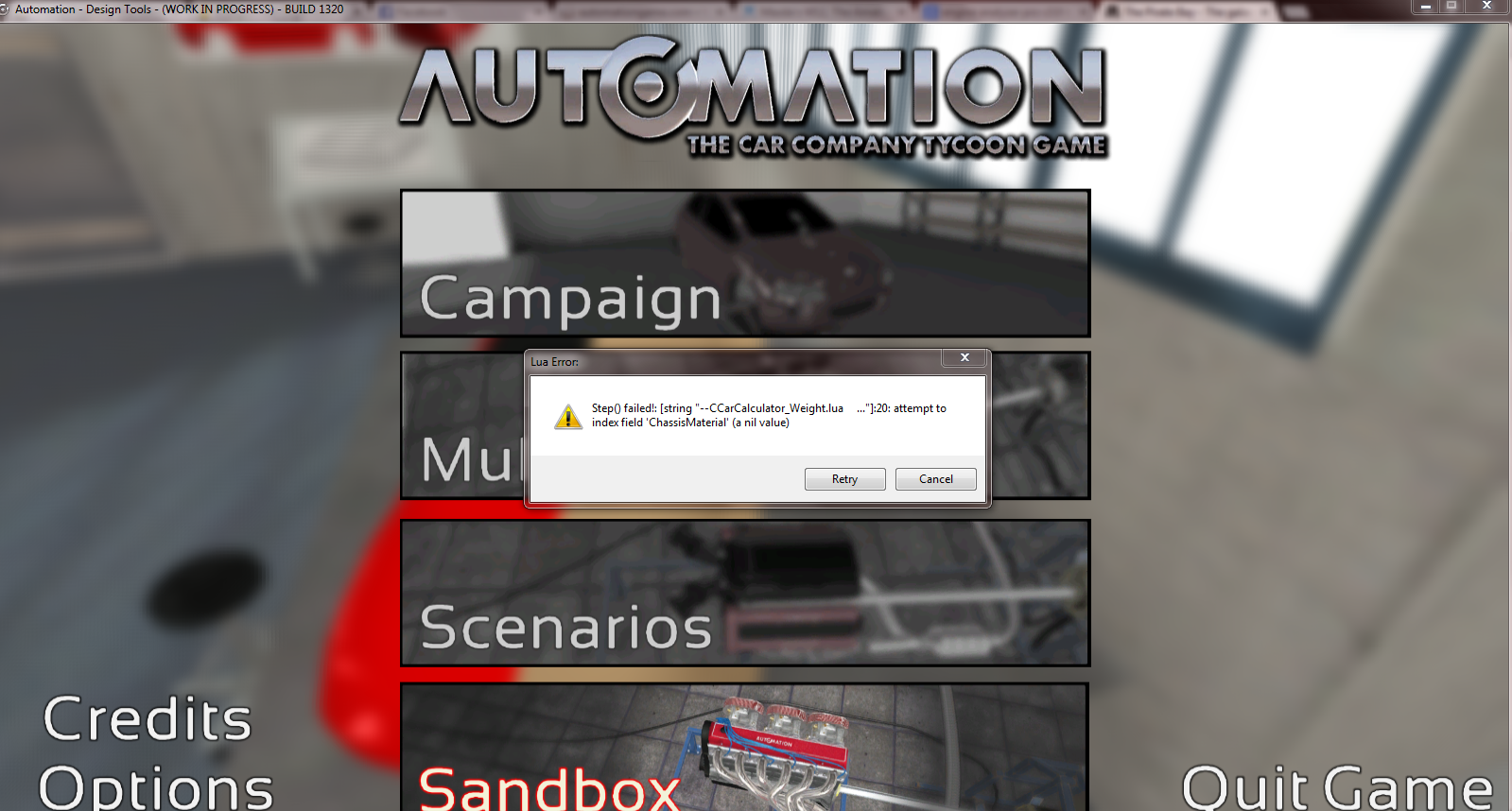 I’m in 1318, I was messing about in 1953 when i accidentally clicked the rounded sports car body. The game crashed, It might be that bug. but i’m not sure. EDIT: quoting fail lol