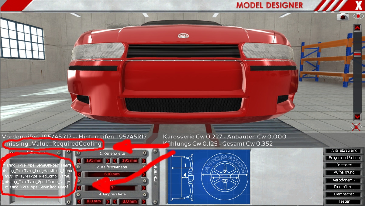 Die Karosserie von dieser art Alfa GTV hat bugs am vorderteil. Wenn man eine Lufthutze wählt und diese von der motorhaube aus langzieht , entstehen zuerst öffnungen und dann , wenn man es weiterzieht , stürzt das spiel ab. deswegen auch keine screens.
