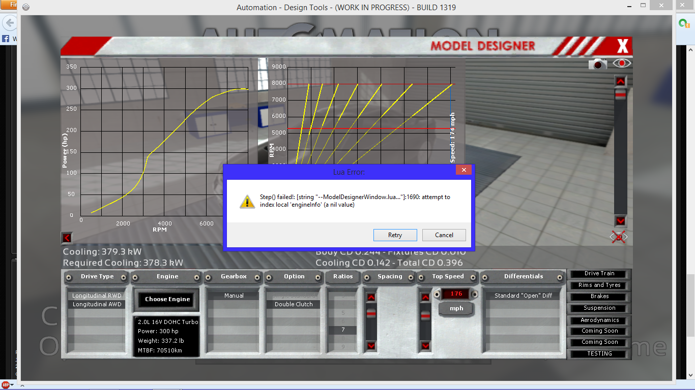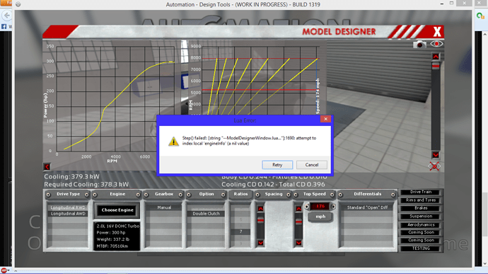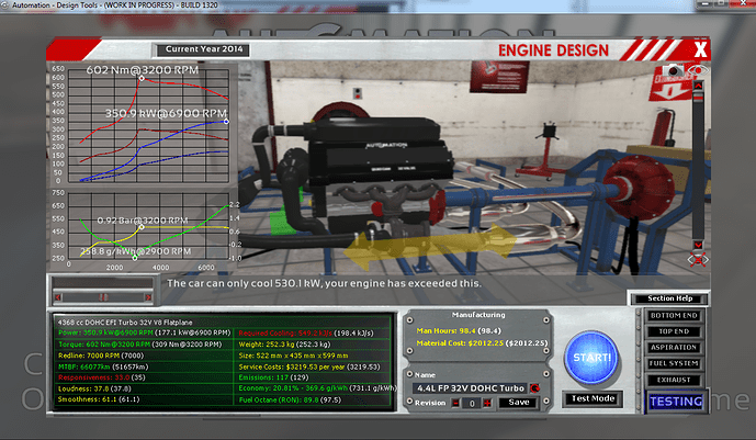 Is there any way to remove the cooling penalty from the engine designer when you are designing the engine on its own? Or, even better, perhaps have a slider that changes the simulated level of cooling your car has in the engine designer? Its kind of annoying getting 0 MTBF on any of the very high power engine that I make, and it would be very useful to see just how starved of cooling air an engine can be without going bang.