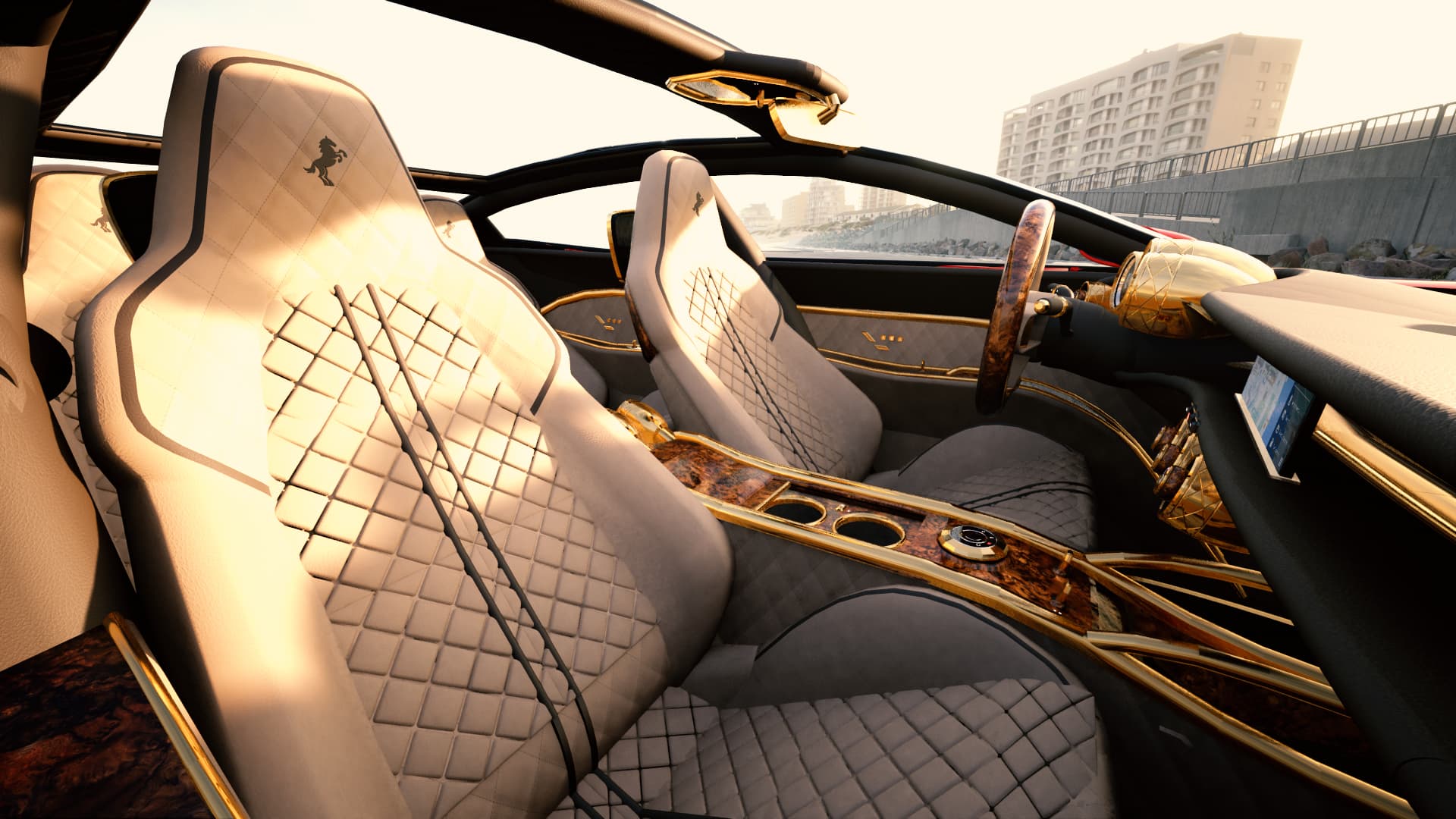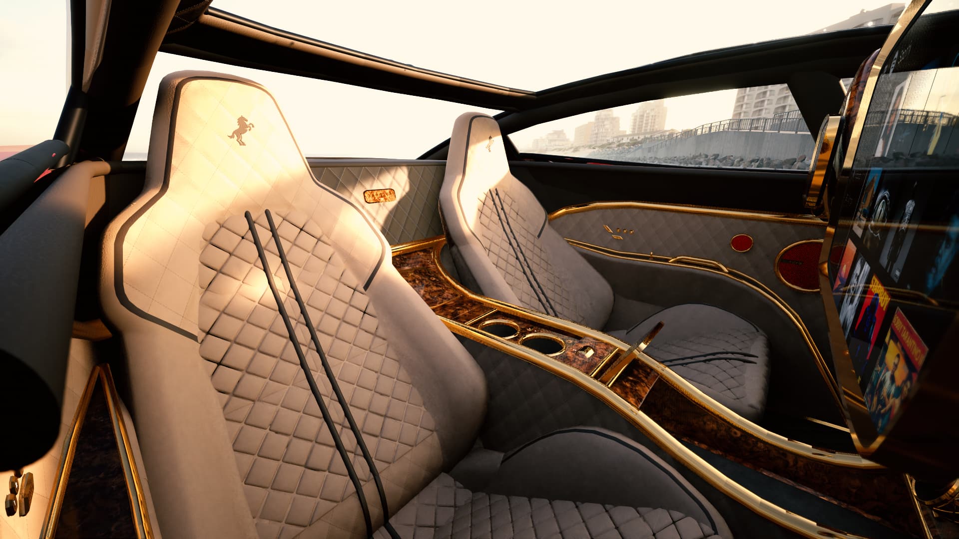 @Kalan - sorry, at first I wasn’t going to put specifications since I was going for a more “visual” storytelling, so I just put the basics. The car is a hybrid, with an axial eMotor attached to the transaxle dual-clutch transmission at the rear providing 250PS, with a naturally-aspirated 4.5L V10 at the front for 680PS (930PS total). It uses a 8kWh battery split in two 4kWh packs located underneath the rear seats. Although it’s got a carbon fiber body & chassis, it weighs 2,000kg because of all the interior stuff and 200kg of sound-proofing materials. As for wheels & brakes, it’s got carbon-ceramics and magnesium-alloy 22" rims on medium-compound tires. It has a continuously-adjusted air suspension system.