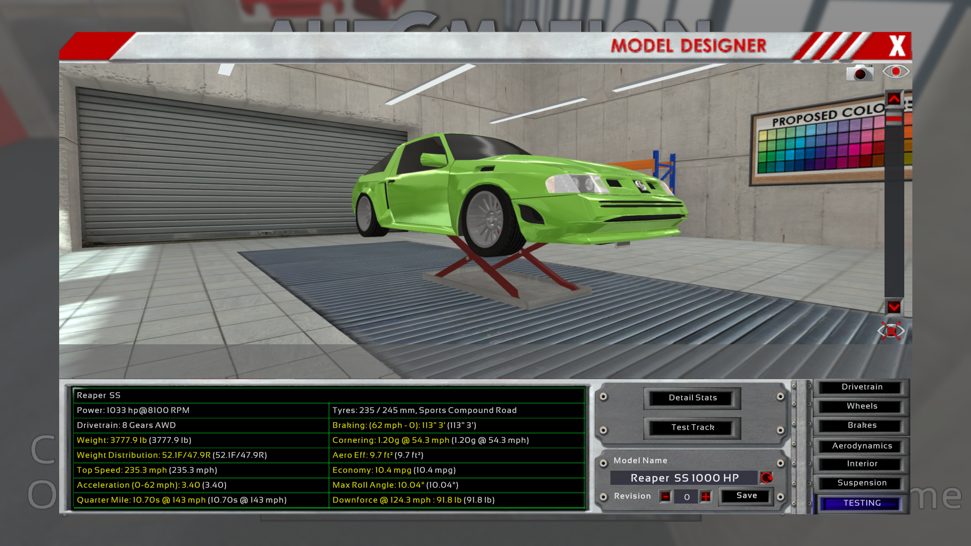 ---------The Razor, Powerful, Hatchback, Sports------------------------------------------------------The Reaper, Coupe, Sports------------------------------