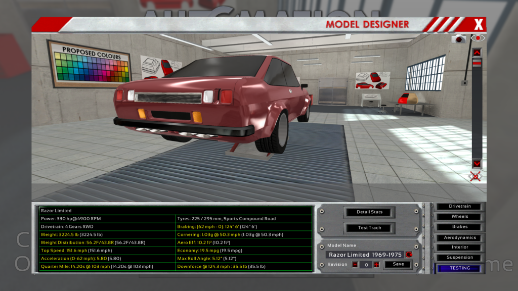 [size=150]The Razor was one of the companies first attempts at making a larger more powerful coupe, it started out like this and ended into something great. The High Aero Eff. Design allowed for