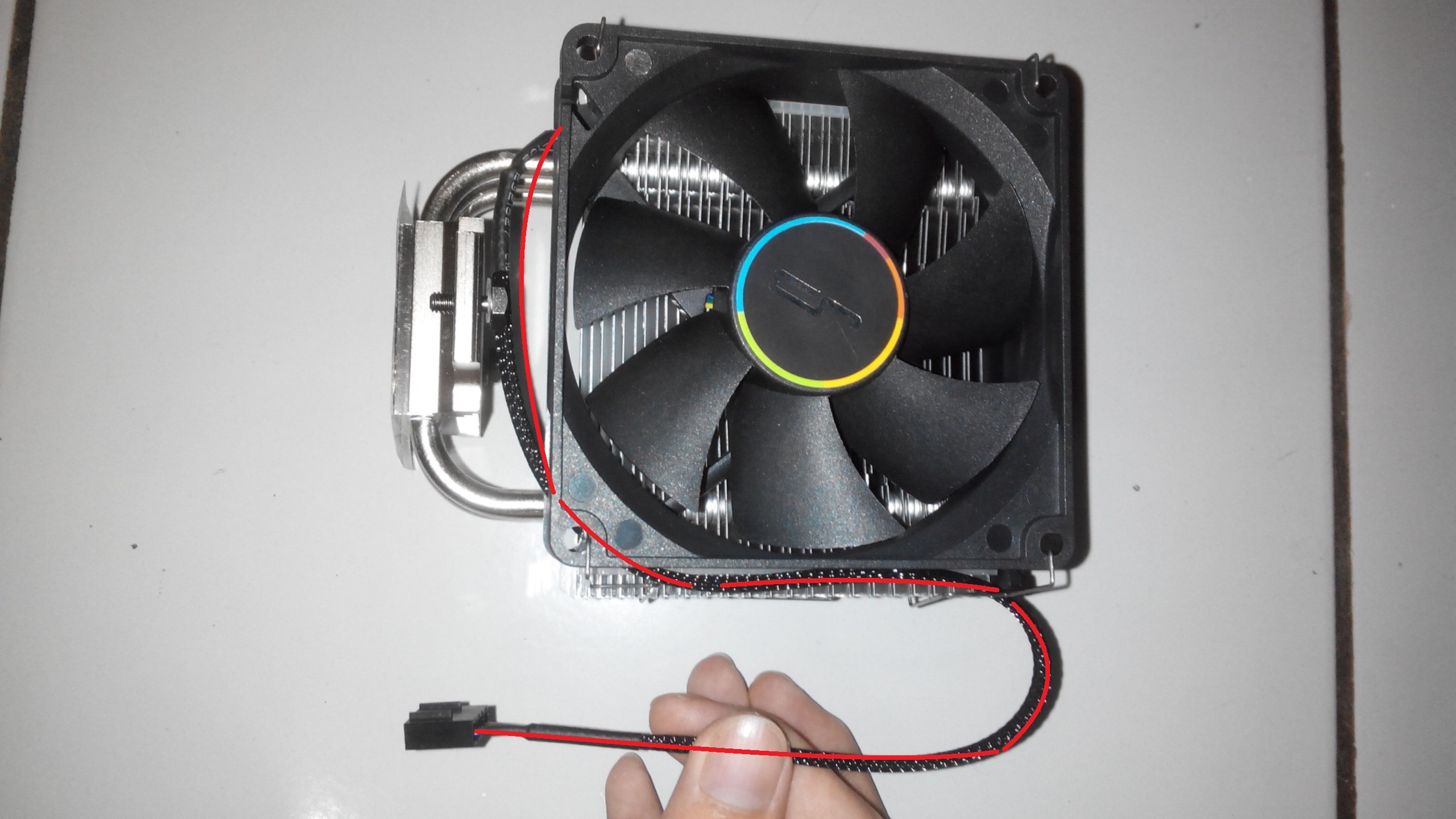 while trying to figure out the cable management, i found that the cable is both small enough to get by the crevices between the fan and the heatsink through the fan clips, and are just the perfect length to to through all that and get to the cpu fan header plug