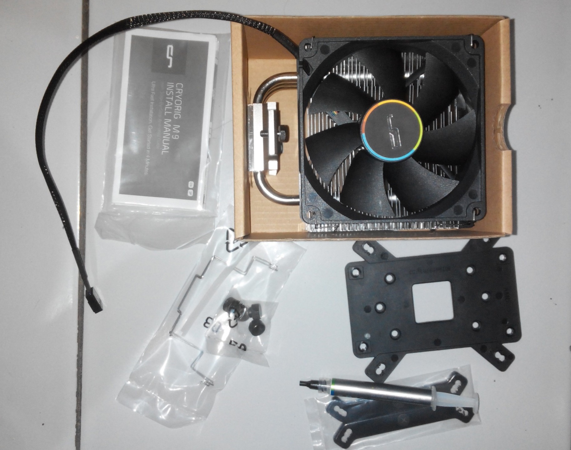 → install the mobo and everything back in the case, install the fan, route the cable and plug it and everything else, basicly the most productive part of the installation → install the fan, route the cabling, and (time consumed: 4 minutes)