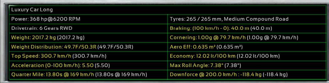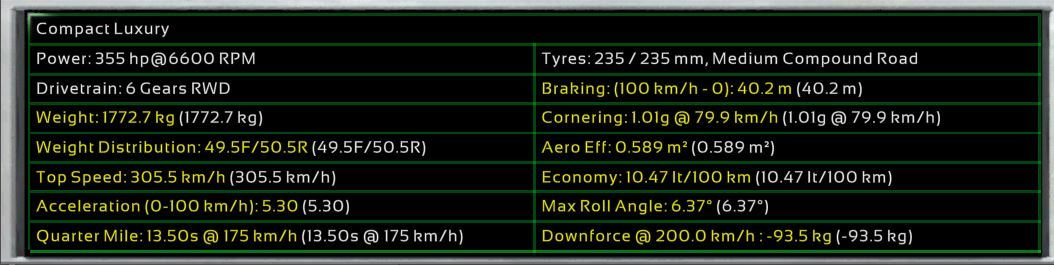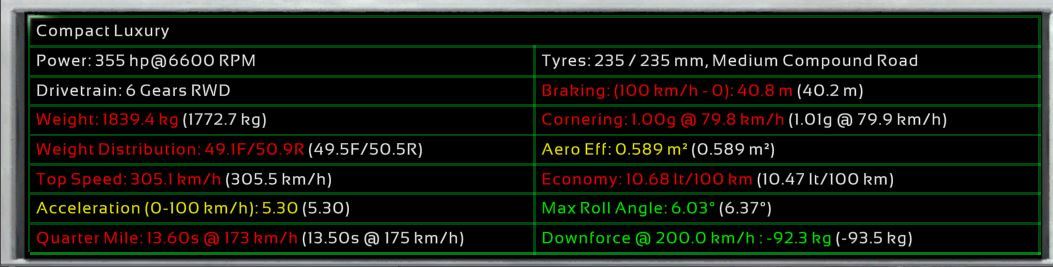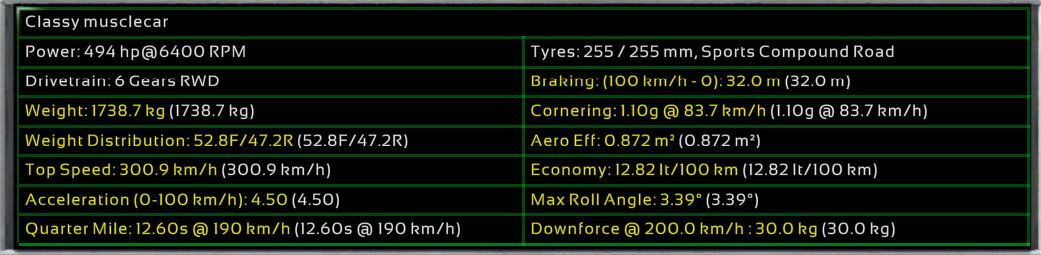You may use semi slick tires or the somewhat cheaper sports compound tires. The difference is 0,1 seconds in the 0-100km/h time and 0,1 seconds for the quarter mile time.