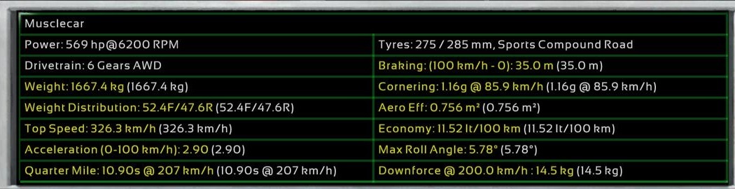 The MSR is our take on the classic muscle car. Everything about it is true to the classics, such as large V8 engines and loads of power but… we made it an 4WD car. Yup, it isn’t an FR layout; it’s a 4WD V8 monstrosity and all models have dual clutch high performance transmissions. It will need 95 octane fuel because the primary market for our cars is Europe and 95 octane fuel is the standard fuel there.