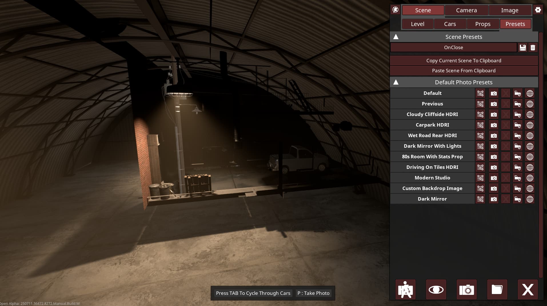 This one is strange. I have spent close to 7 hours building two cars, and all of my work has ended to no avail. I have attached screenshots of the second car I made. They feature a photo scene stuck to a car in the photo scene and in the beamng export screen. It is hard to exactly explain this issue, however this is be best I can do. To produce the issue seen in the screenshots, I entered the photo scene with a completely different car and tried to switch scenes, attempting to find a good shot. I guess I did it too quick or something, because the screen went black. I clicked the save button(because it was still there, just the background wasnt), and reloaded the game. After loading back in to continue on with the photoshoot, I realized that there was a photoscene.. inside of another photo scene. So, I left that screen, and went to export, assuming there were no problems. Then, I see my car hanging out of a photo scene in the beamng export screen. I am sorta panicking now and decide to export anyway, expecting the worst. The export finishes and I load in the car. The back end is floating and I can not move (until i switch to 4wd because front wheels are on the ground). I proceed to drift on my front two wheels. I then decided to do it again. Make another car, and try again. Same issue. I am going to try changing from and back to the beta. (which I am on, probably should have mentioned earlier)
