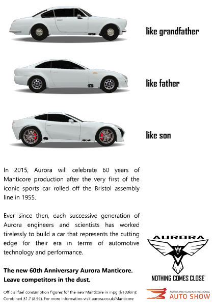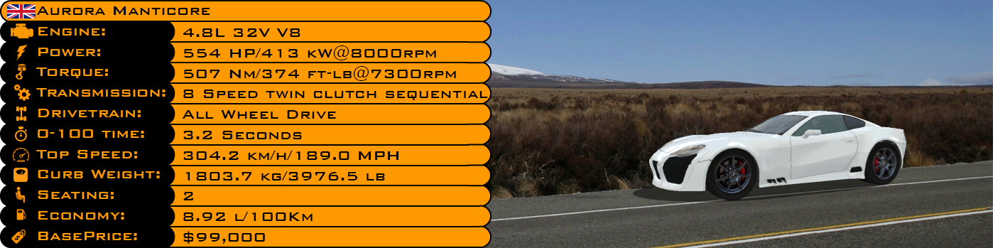 PR material for my halo super car, the Aurora Manticore:
