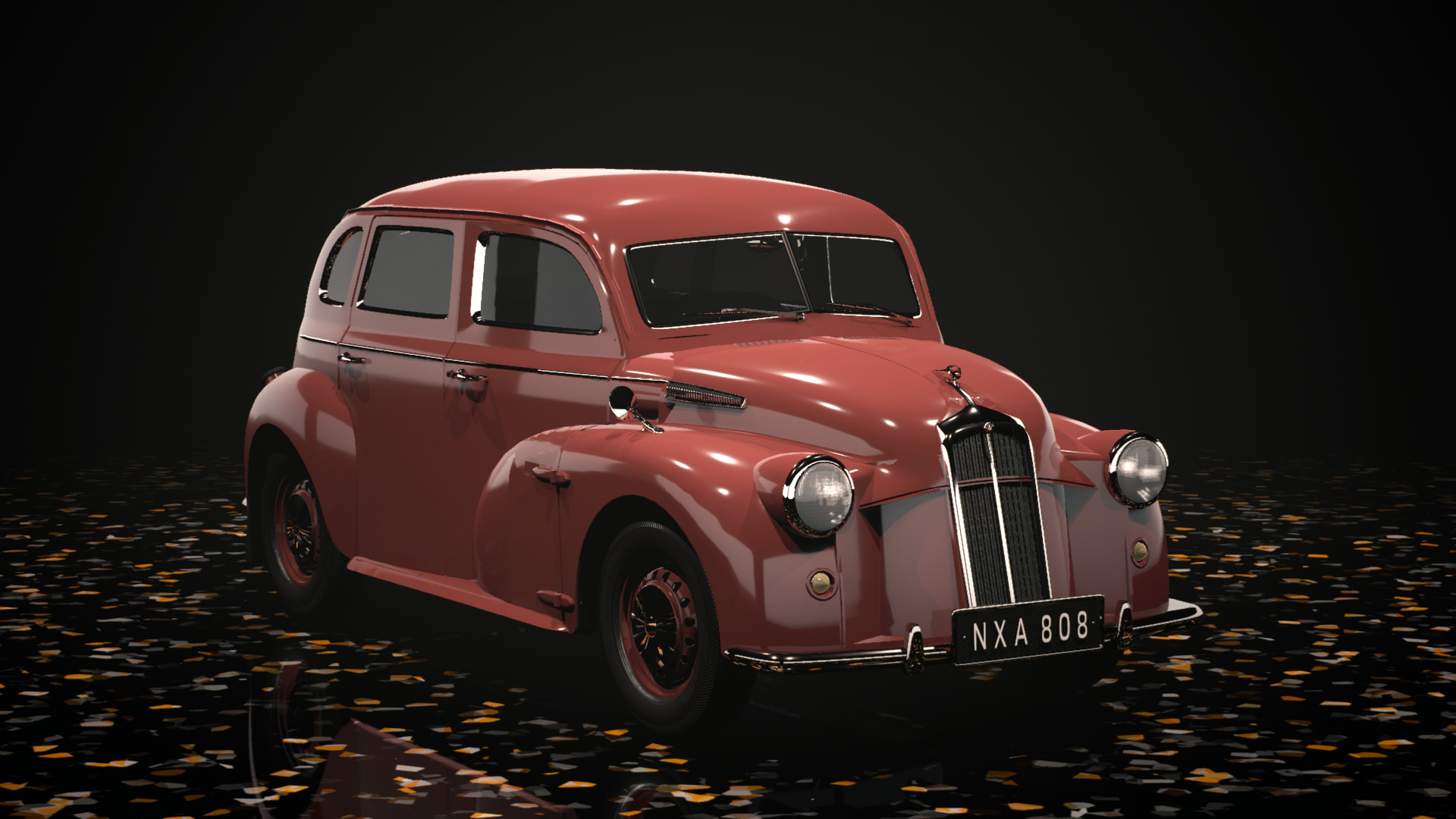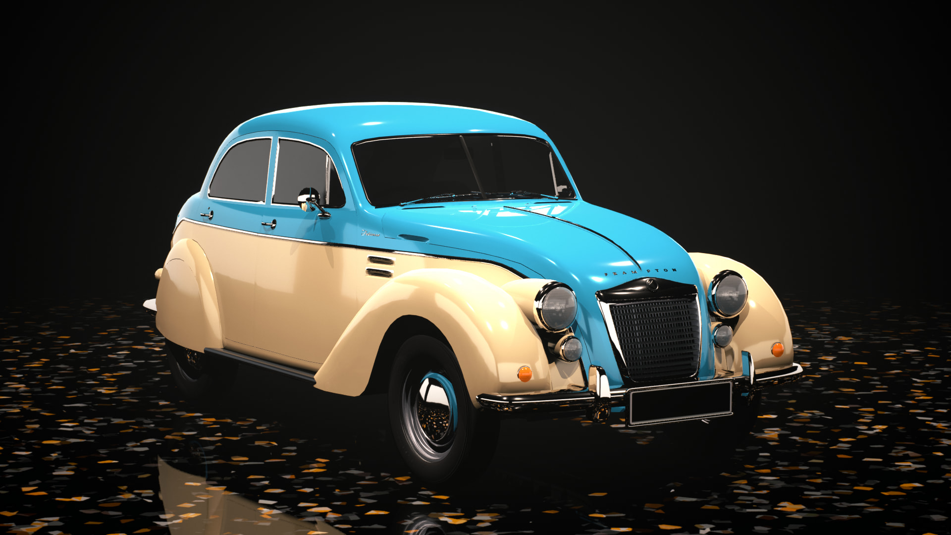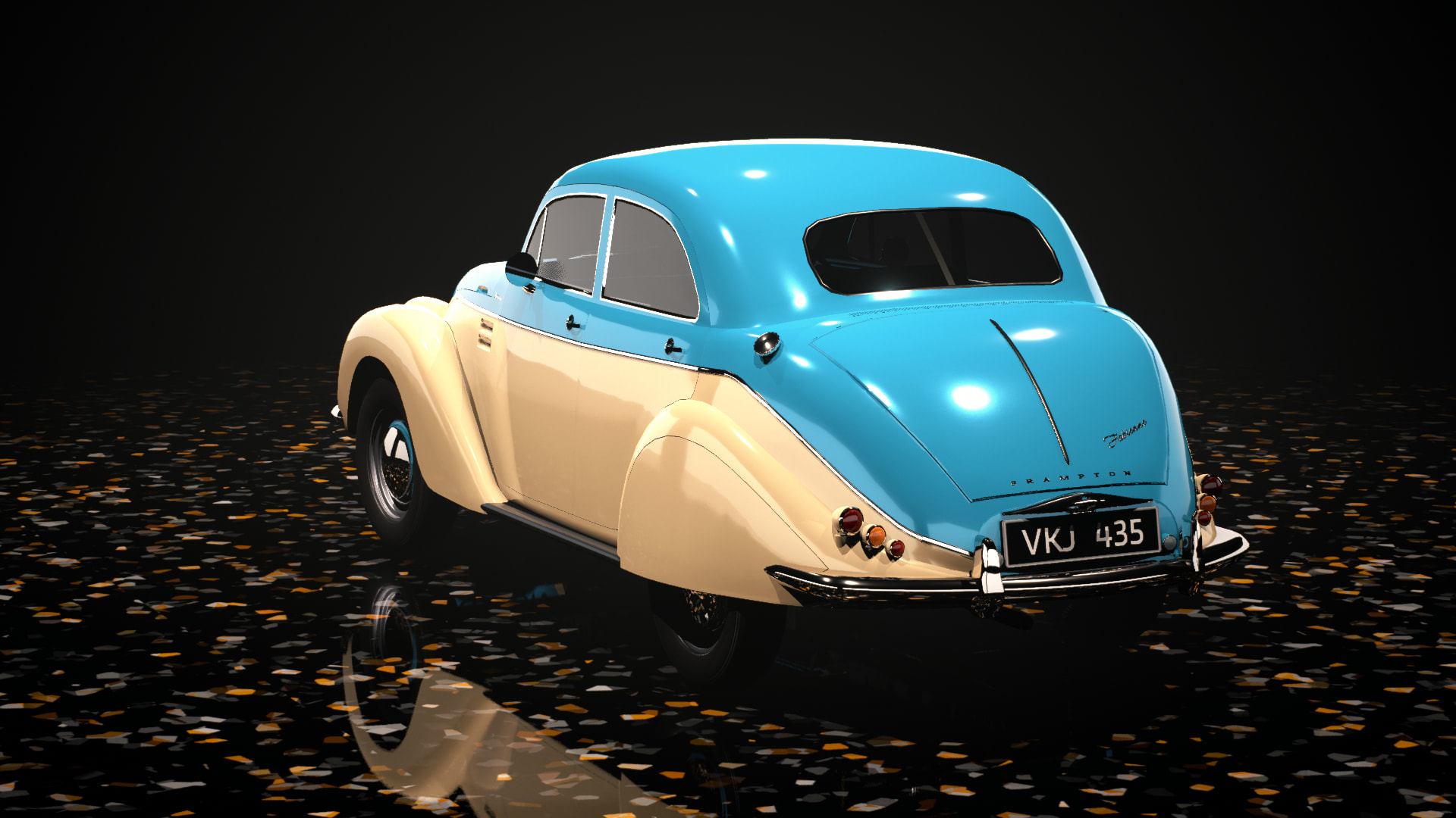 I am only just now realizing the similarity of the body to the Henry J as well as some of the similarities in background story! My main inspiration for the concept was actually the abandoned Chevrolet Cadet–an ahead-of-its-time compact car design GM abandoned in 1946 after realizing there was plenty of postwar demand for full-size cars in the US.