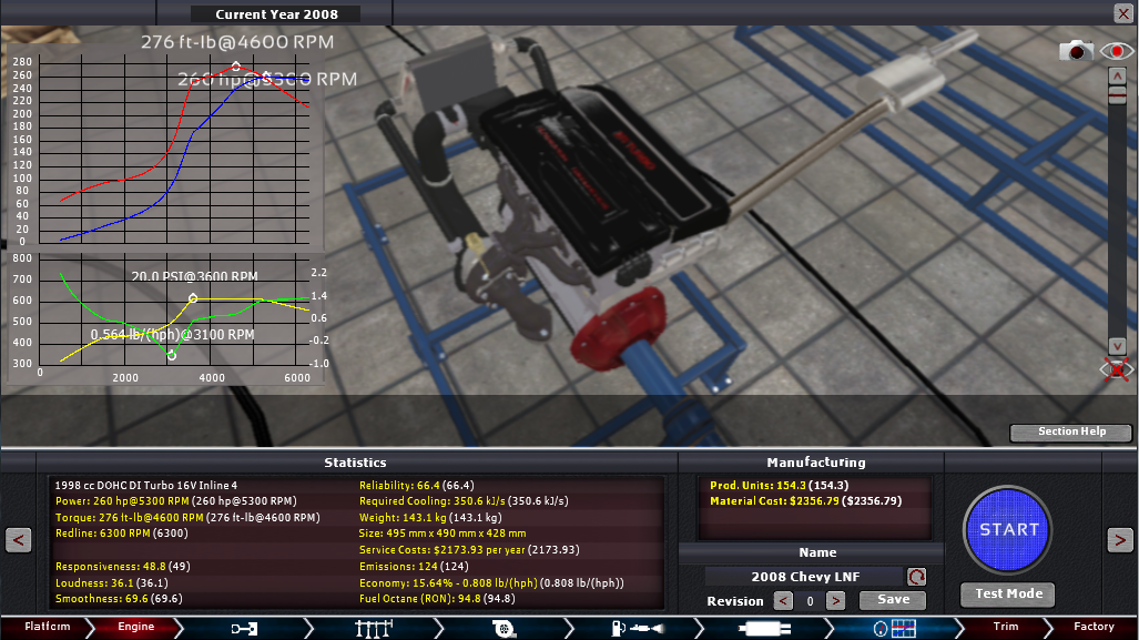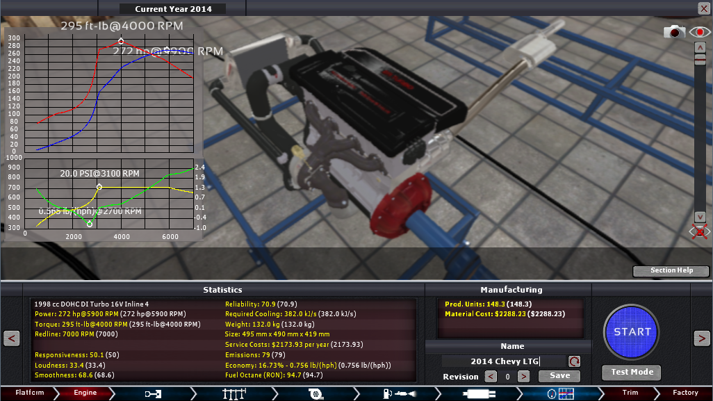 I saw this new engine on Chevy’s website and felt like giving it ago, I have no idea what pistons, turbo size or inter-cooler (if any) it has so this is bound to be an unrealistic recreation. In fact who am I kidding? Of course it’s an unrealistic recreation, the real thing has a Twin-scroll turbocharger which isn’t even in the game yet! Anyway take it if you want, I felt excited enough to make this engine after I saw it was a DOHC 4 valve per cylinder engine.