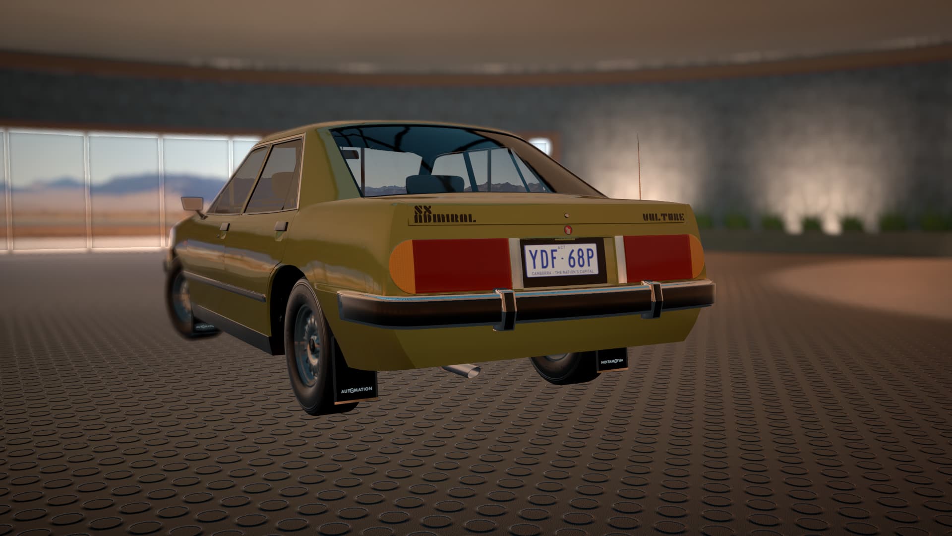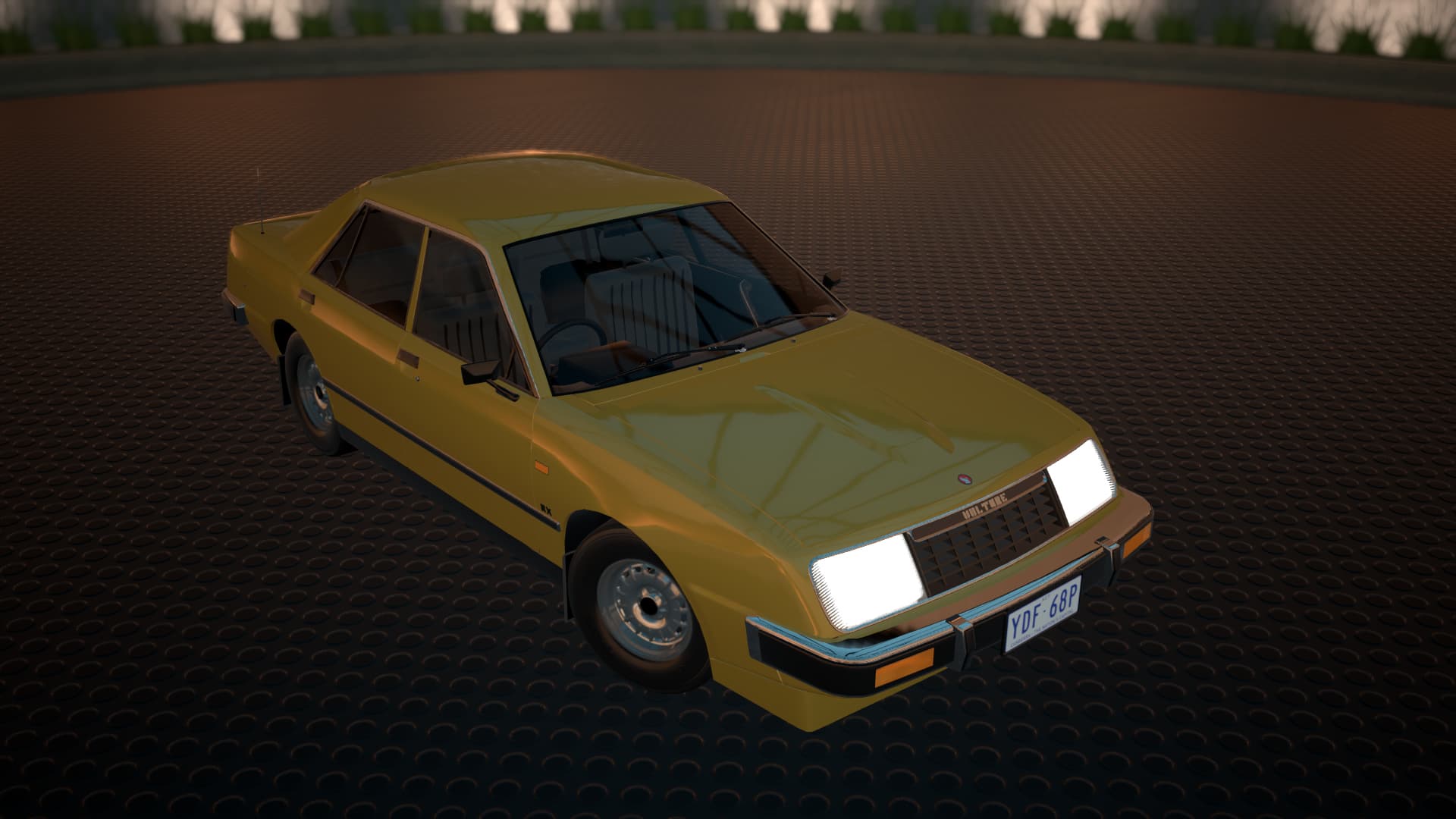 I redownloaded the Al-Rilma version of the game and found this sedan that I think I was making for JOC7A. Just added the plastic cladding on the front and rear bumpers and changed the colour from the “Primer Grey” I use for designing to the Wulsen green, cause I ‘think’ I was trying to make a mid 80s WulsenBoar.