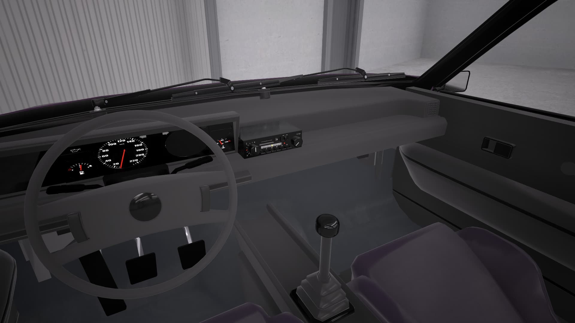 The dashboard is largely kept stock, albeit with the faux wood on the dashboard from an Icarus DX. However, the simple vinyl interior was reupholstered in gold coloured velour. A wood steering wheel tops it all off.