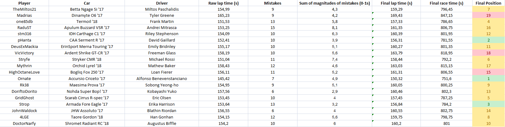 Well done to @Mr.Computah for hosting your first race competition, I look forward to future such competitions!